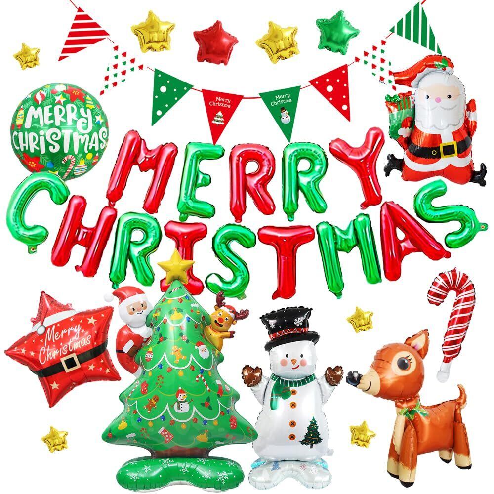 クリスマス バルーン クリスマス 飾り 豪華 飾り付け 風船 アルミバルーン 風船 装飾 雰囲気メーカー お店 パーティー 学園祭 文化祭 デコレーション (デラックスセット(2色文字))