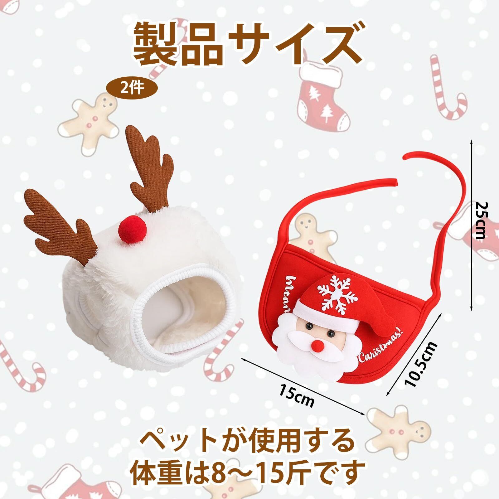 クリスマス 犬 コスプレ: この2点セットは犬や猫のためのクリスマス衣装で、頭套と围脖が含まれています; クリスマスパーティーや記念撮影に最適です; 犬 クリスマス コスプレはとてもかわいい、犬 クリスマスプレゼントとしても人気があります