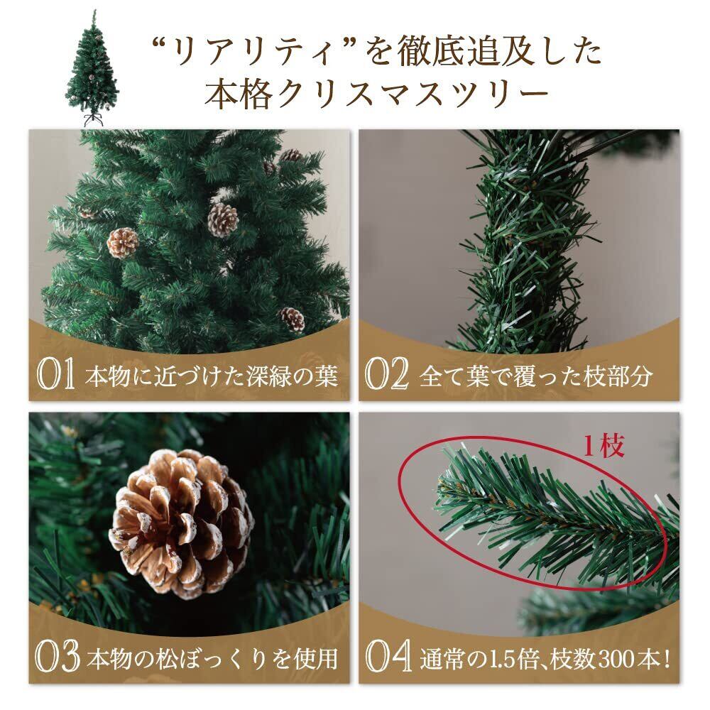 クリスマスツリー 『本物の葉の色を再現したナチュラルツリー』 150cm 120cm 180cm 210cm まつぼっくり 松かさ コンパクト収納可能 (グリーン, 120㎝)