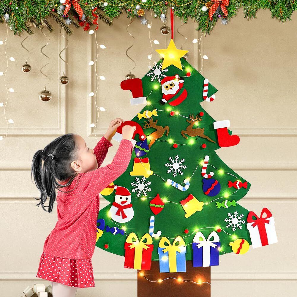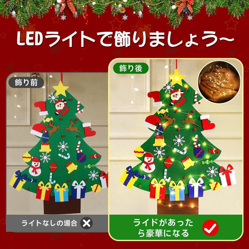 yazi フェルト クリスマスツリー led電飾付き 壁かけ クリスマスツリー オーナメント 飾り付け サンタ・雪だるま イルミネーションライト付き クリスマス デコレーション 手作り クリスマス タペストリー 繰り返し使用 収納バッグ付き (赤緑)