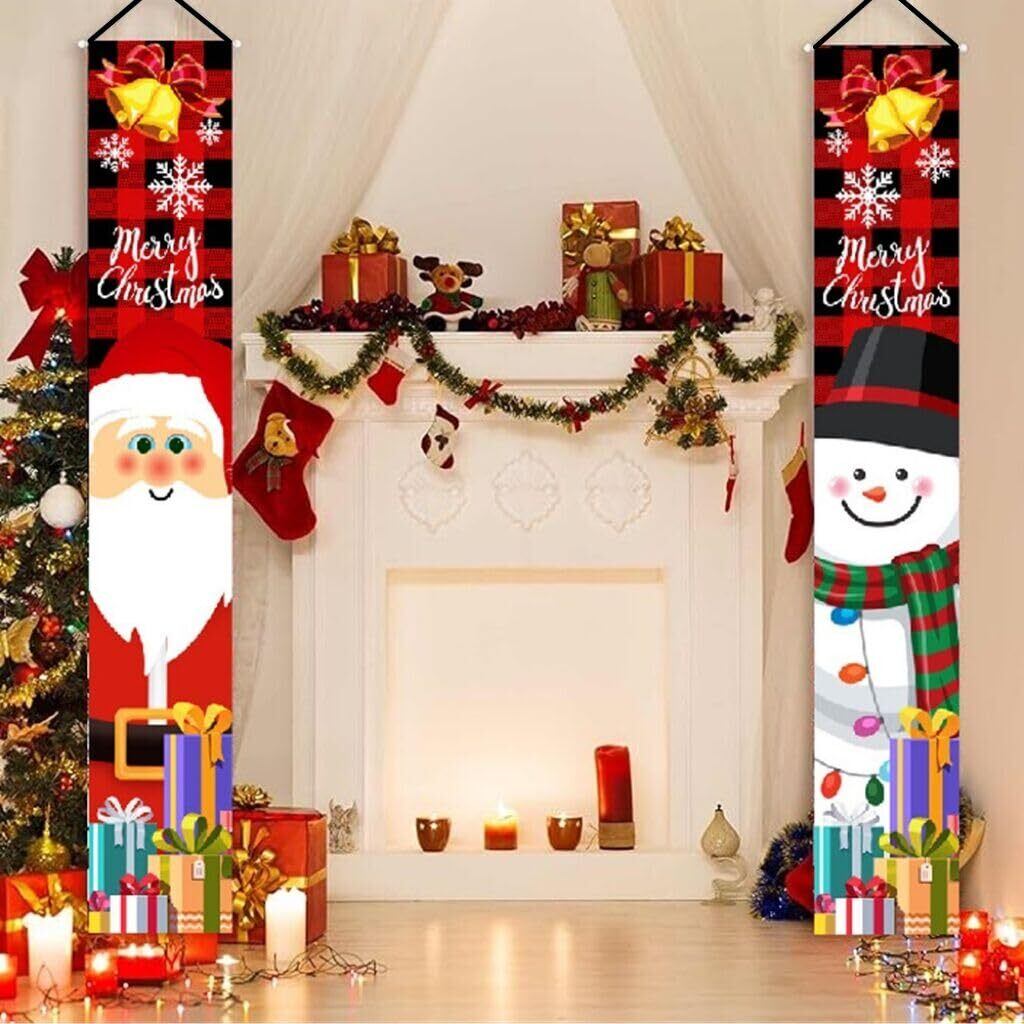 DIFEIUKI クリスマス 玄関飾り ドアバナー タペストリー Merry Christmas ポスター 長尺 かわいい サンタ 雪だるま 吊り下げ バナー 屋内 屋外 玄関 ドア 壁 パーティー 玄関デコレーション 180*30cm