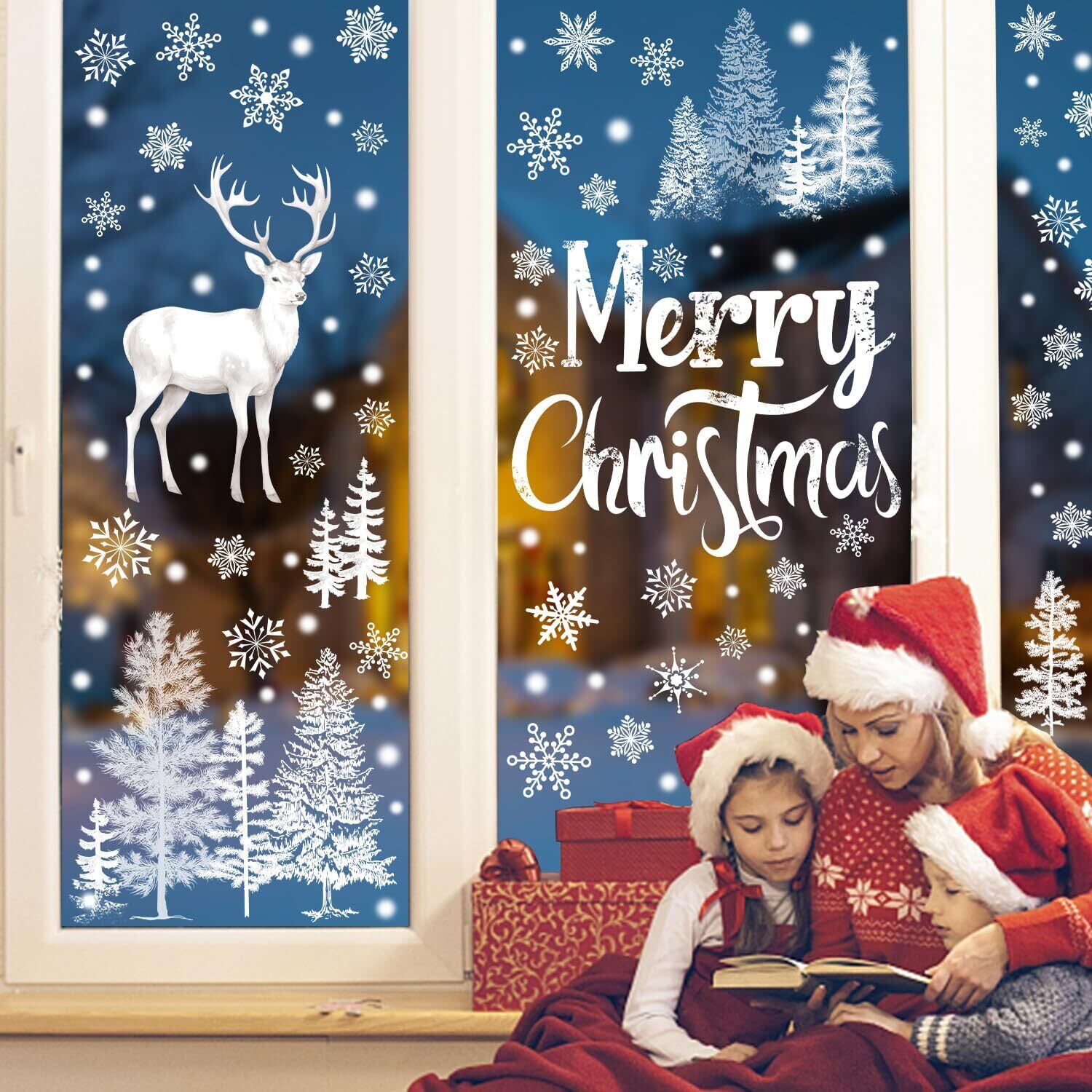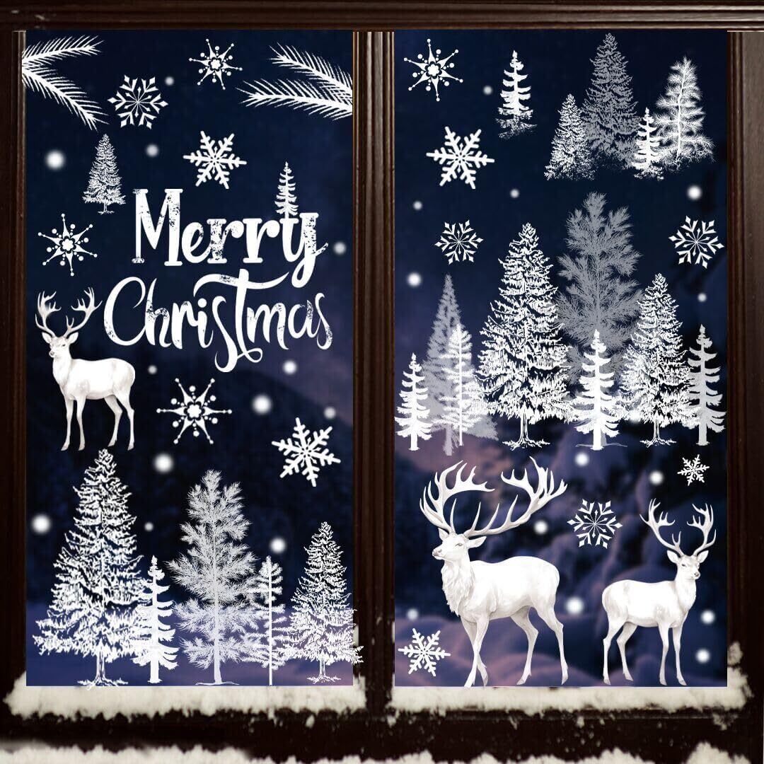 ◆FINGOOO クリスマス ステッカー 窓 シール 飾り ジェル 9枚 21×28CM・228pcs ウォールステッカー 静電気 剥がせる 防水 汚れない ホワイト 説明書付き (B)◆