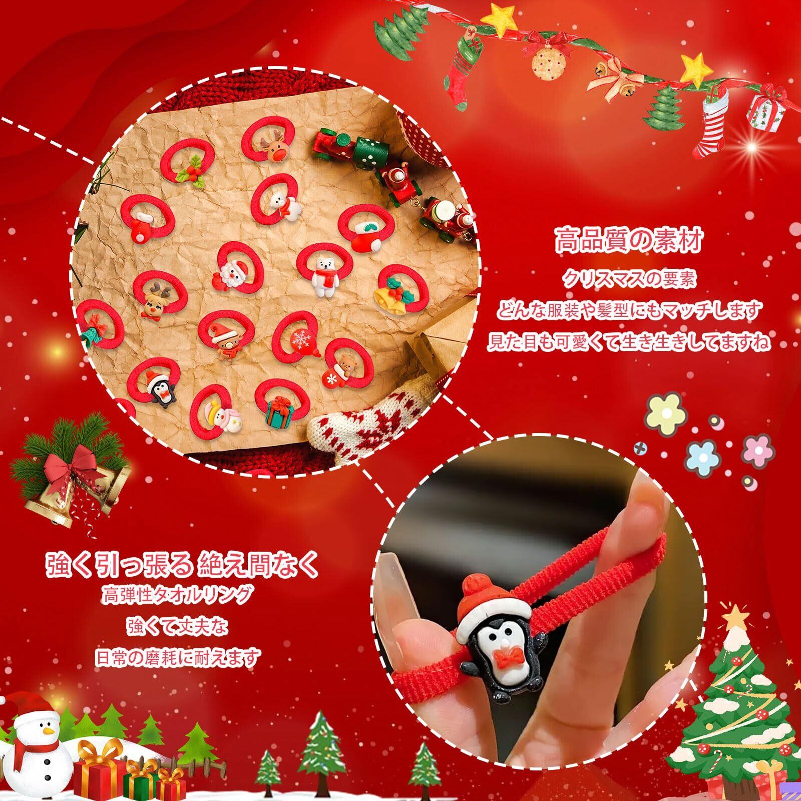 このヘアゴムセットを使うことで、クリスマスシーズンがさらに特別なものになるはずです。お子様の笑顔と共に、思い出に残るクリスマスを演出してみてください!