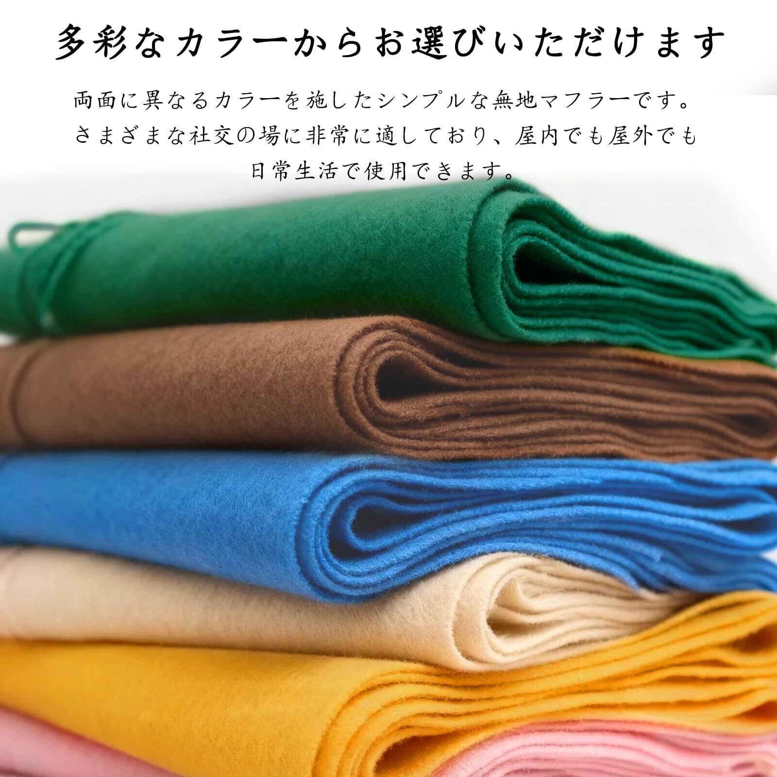 このストールは、無地のシンプルなデザインながら、両面で異なるカラーを楽しめます。おしゃれなアクセントとして、どんなコーディネートにも合わせやすいアイテムです。学生から大人まで幅広い年齢層にフィットする、スタイリッシュな仕上がりが魅力です。