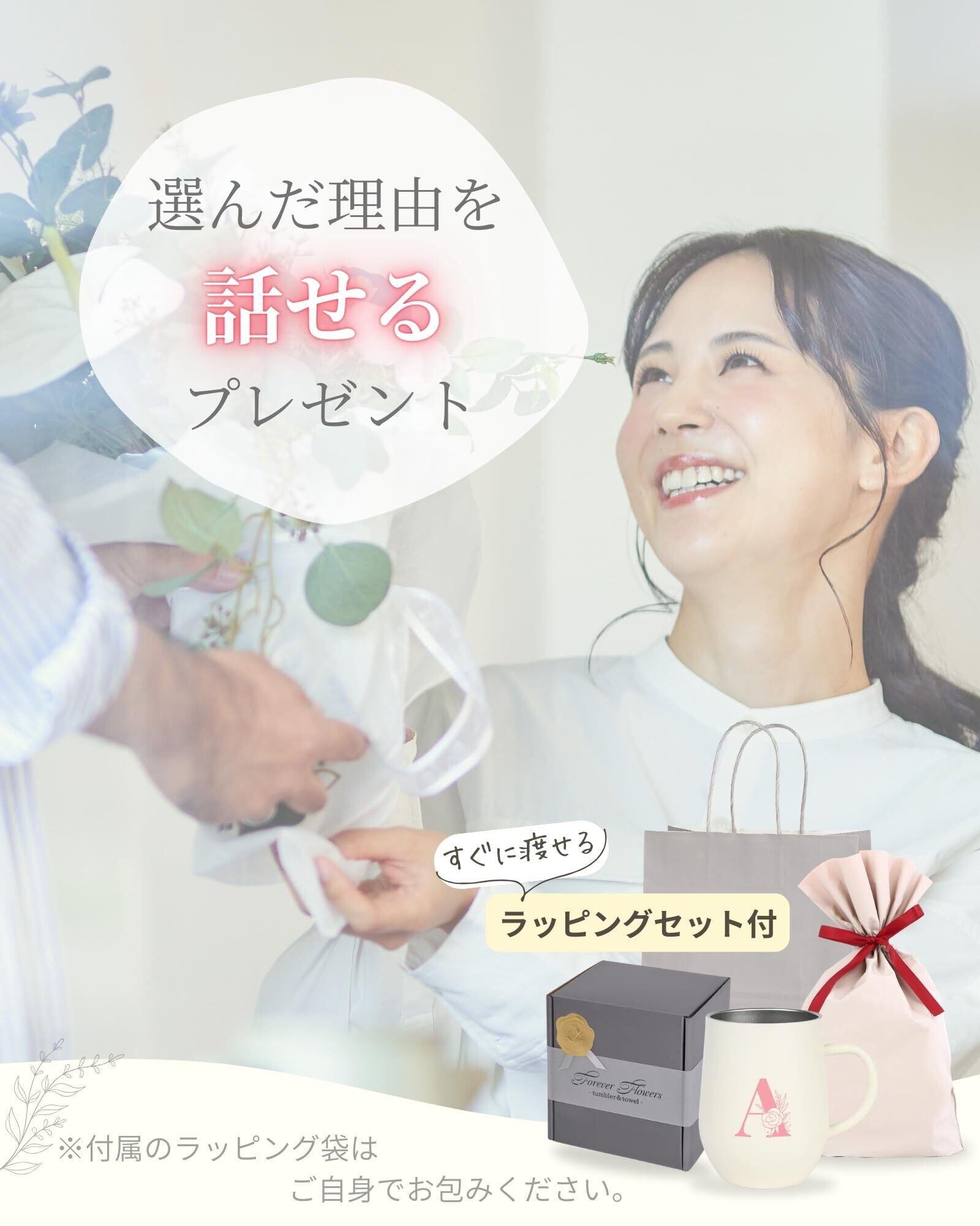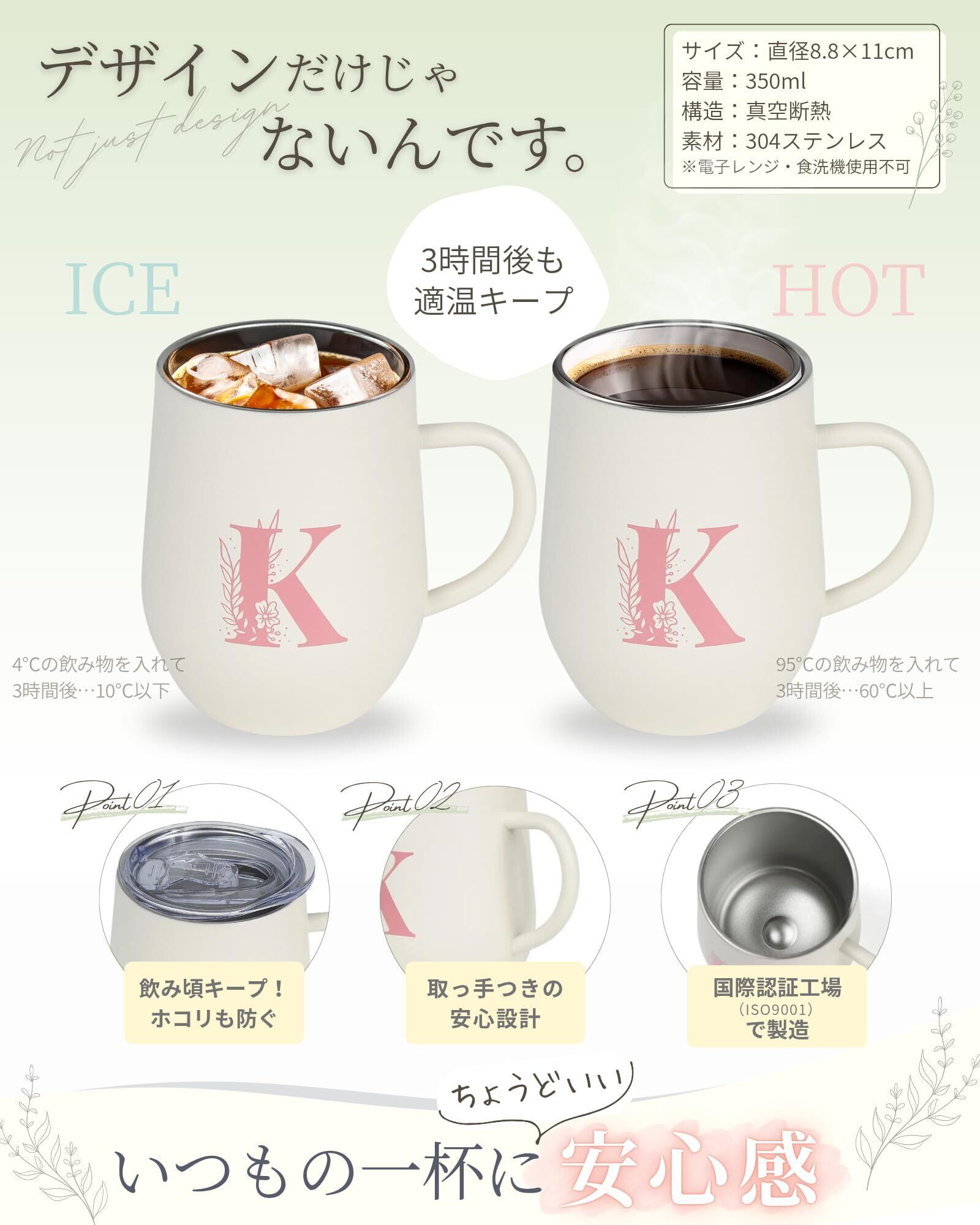 イニシャル 名前入りタンブラー ハンカチ 今治認定 【暮らしになじむギフト】 誕生日プレゼント女性 人気 40代 50代 クリスマス 母親 母の日 マグカップ (K アイボリー)