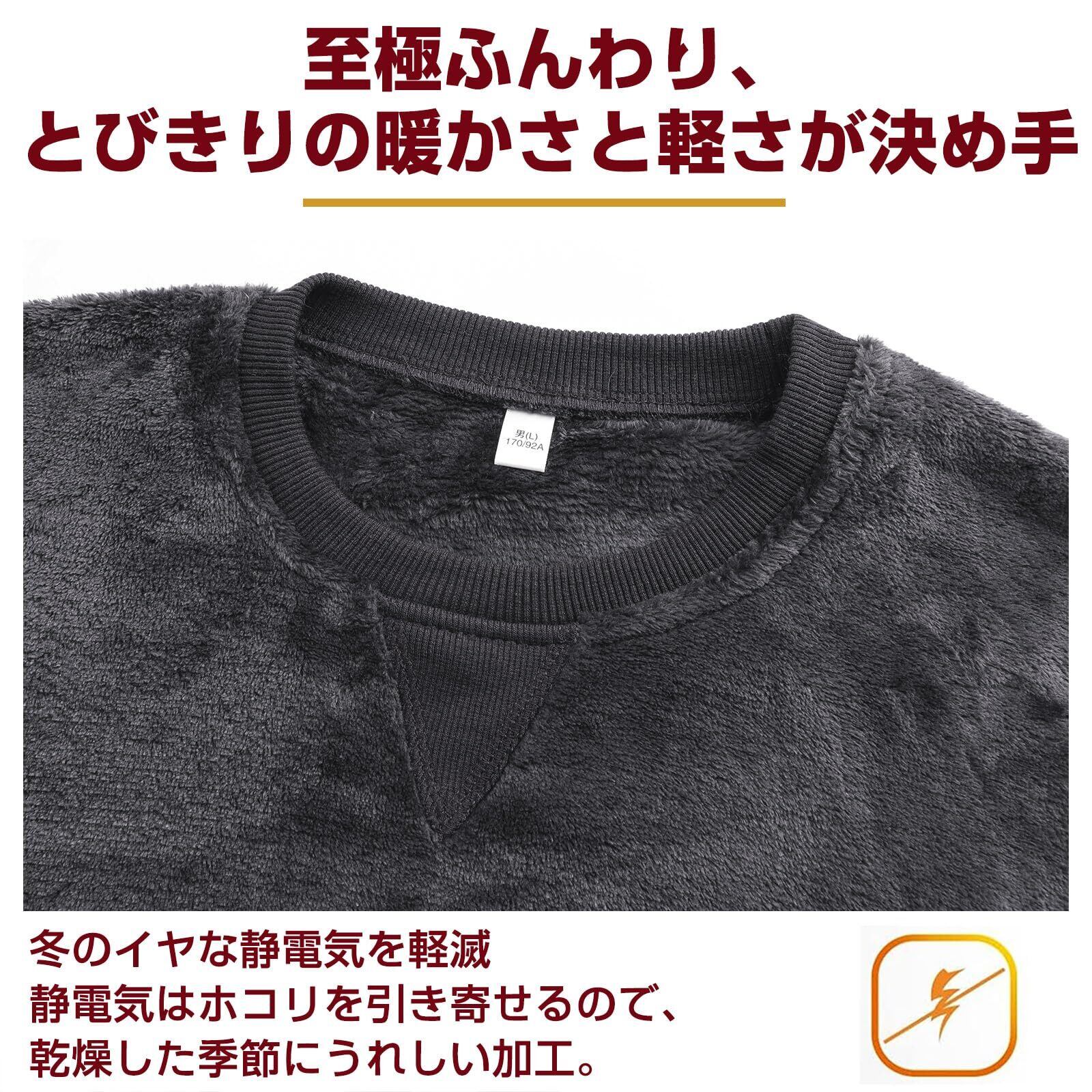 [ヒルトップクラウド] パジャマ メンズ もこもこ ルームウェア 冬 裏起毛 長袖 上下セット 丸首 フランネル 保温 防寒 暖かい 部屋着 クリスマス プレゼント 秋冬