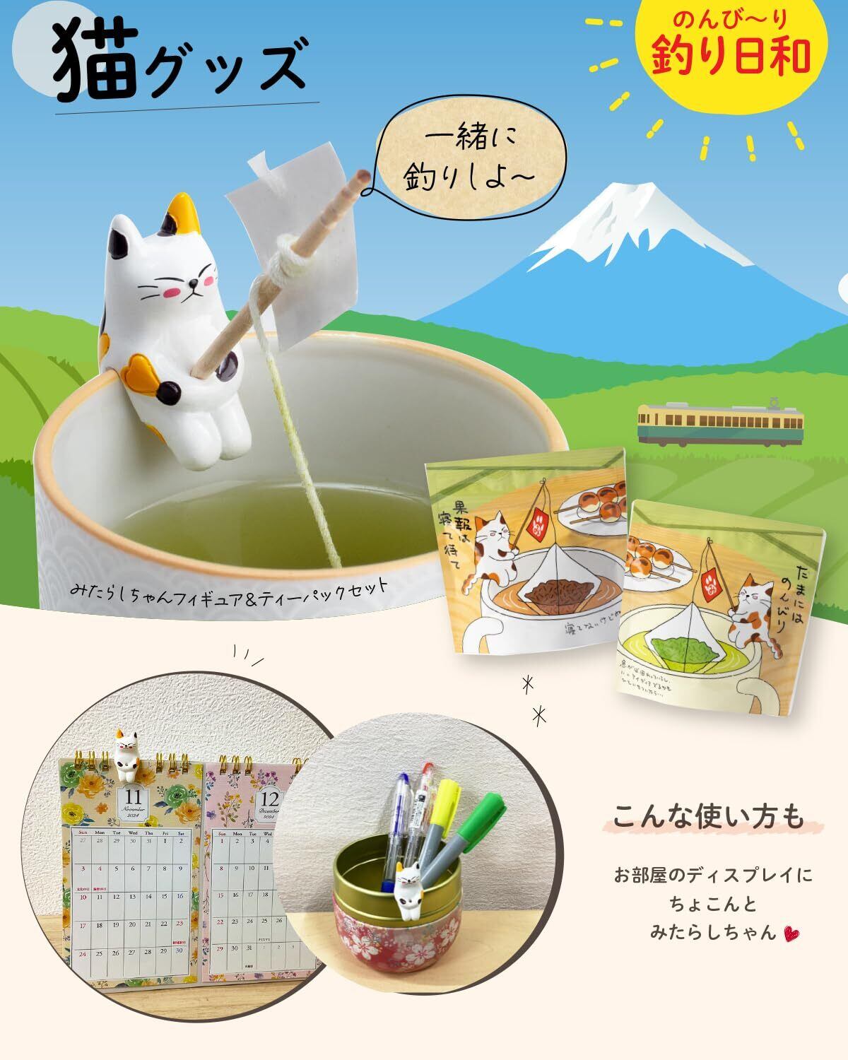荒畑園 猫グッズ 紅茶 ギフト 女性 母 プレゼント フィギュア付き 静岡産緑茶ティーパック5包 静岡産紅茶ティーパック5包