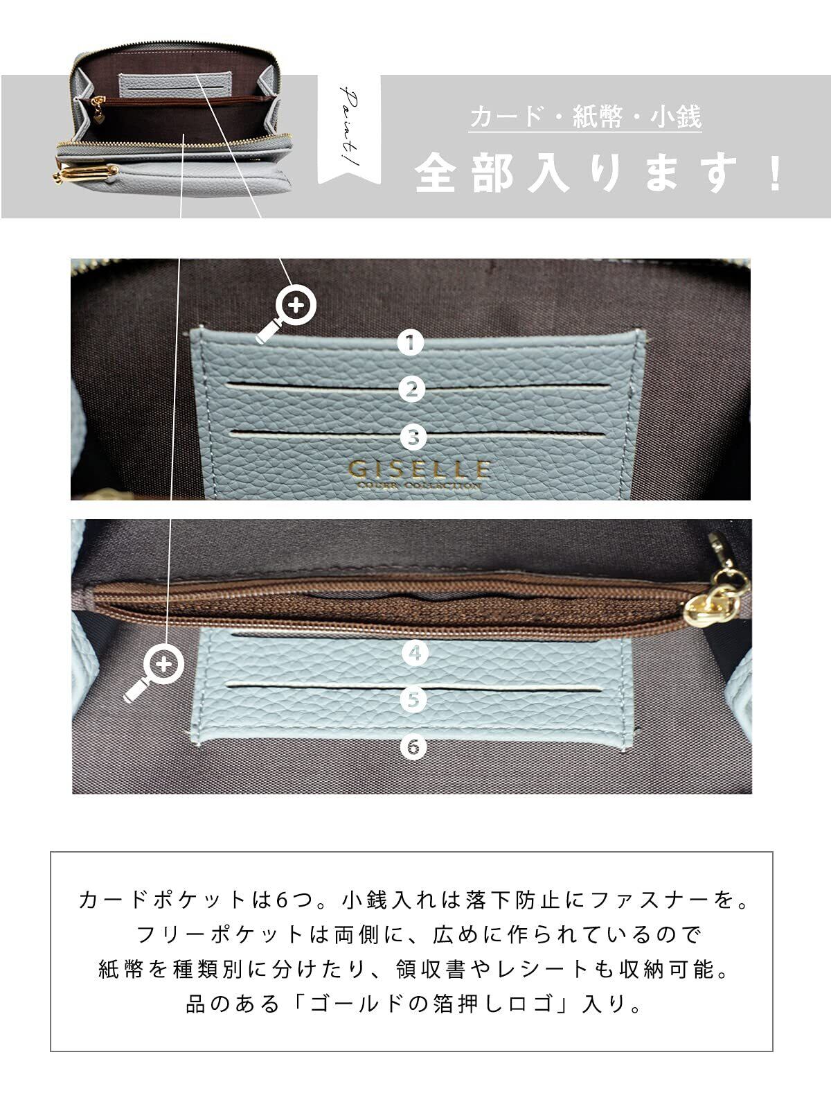 [ジゼル] スマホショルダー ポーチ レディース ショルダーバッグ お財布ポシェット がまぐち 斜め掛け 長財布 軽量 カードケース 縦型