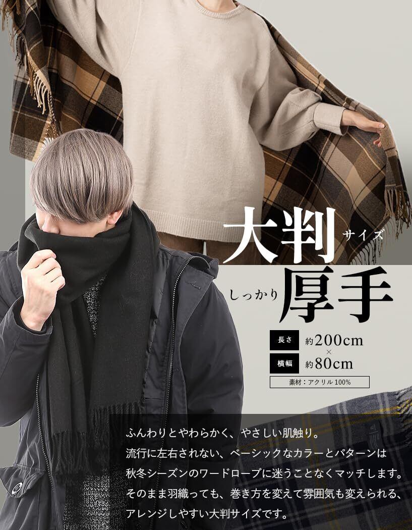 [Loo&C, 厚手, 大判ストール, メンズ, レディース, チェック柄, 無地, ユニセックス, 秋冬, マフラー]