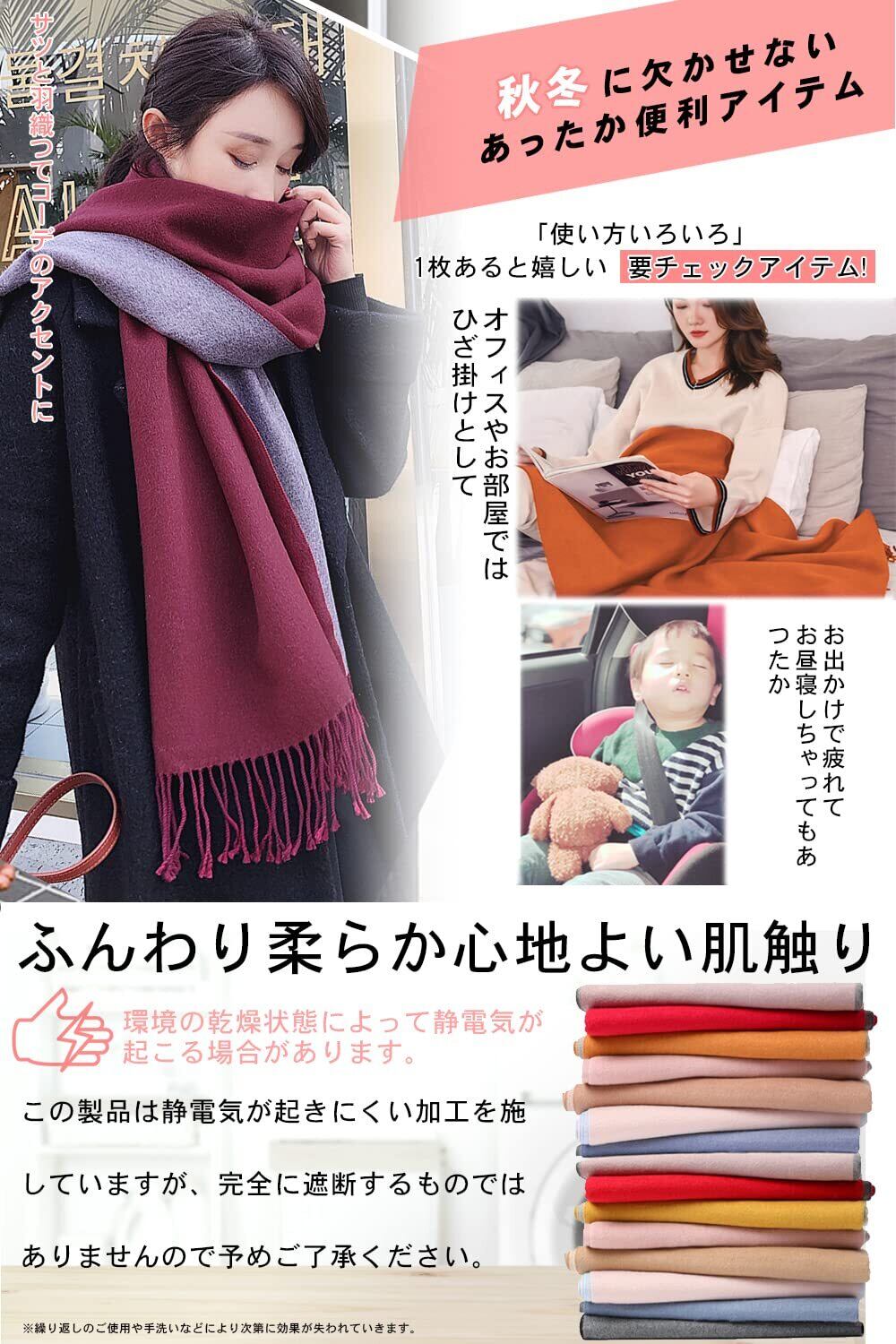[Hoomoi] マフラー レディース 人気 カシミヤタッチ ストール 大判 マフラー ファッション 冬 厚手 両面 使える ギフトボックス付き 無地 学生 誕生日プレゼント フリンジ生地 襟巻き 秋冬定番 クリスマスプレゼント