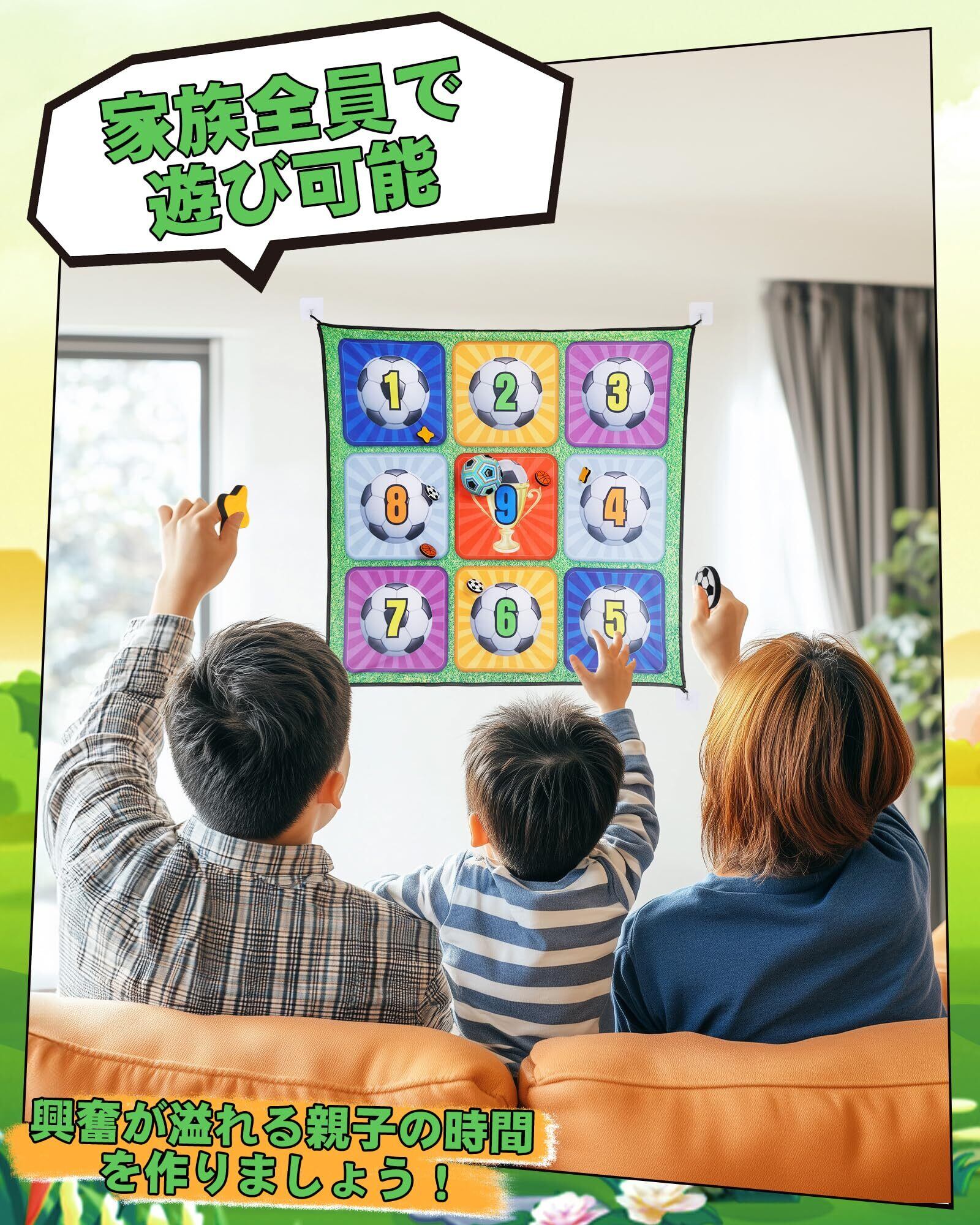 数種類のダーツが付属しており、サッカーボールを使ったシュート練習ができるので、運動能力を高めるのに役立ちます。特に小学生や子供たちにぴったりで、遊びながらスポーツスキルを身につけることができます。ダーツの的に当てることで集中力も養えますね。