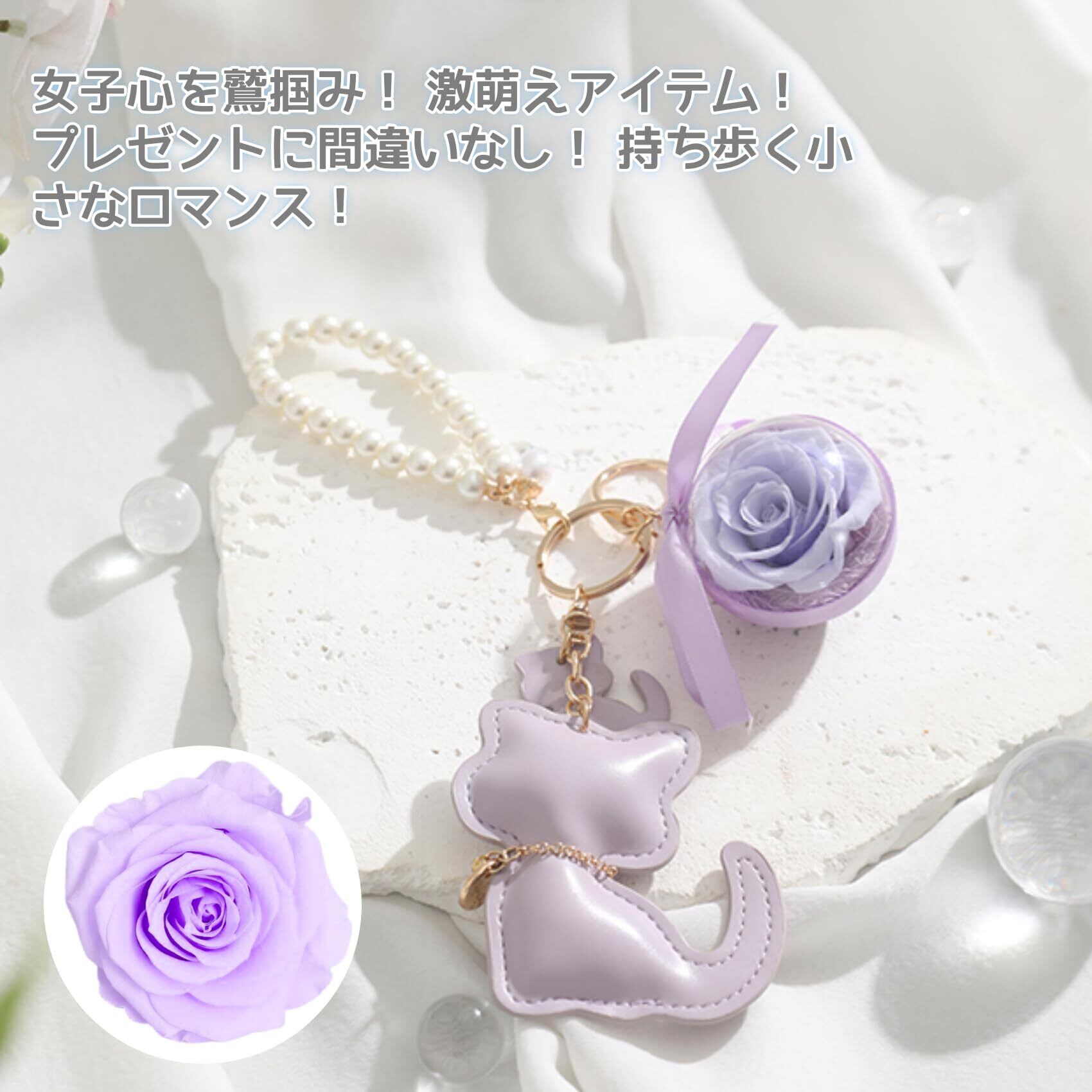 プリザーブドフラワー キーホルダーレディースキーホルダー Happy birthday 母の日プレゼント ホワイト デープレ枯れない花 誕生日プレゼント女性人気 かわいい ウサギ 母 敬老の日 彼女 女性友達 娘 ギフト バレンタイン 記念日 結婚祝い 引越し祝い 入学 卒業 退職祝 バラ ひな祭り エターナルフラワー (パープル, 猫)