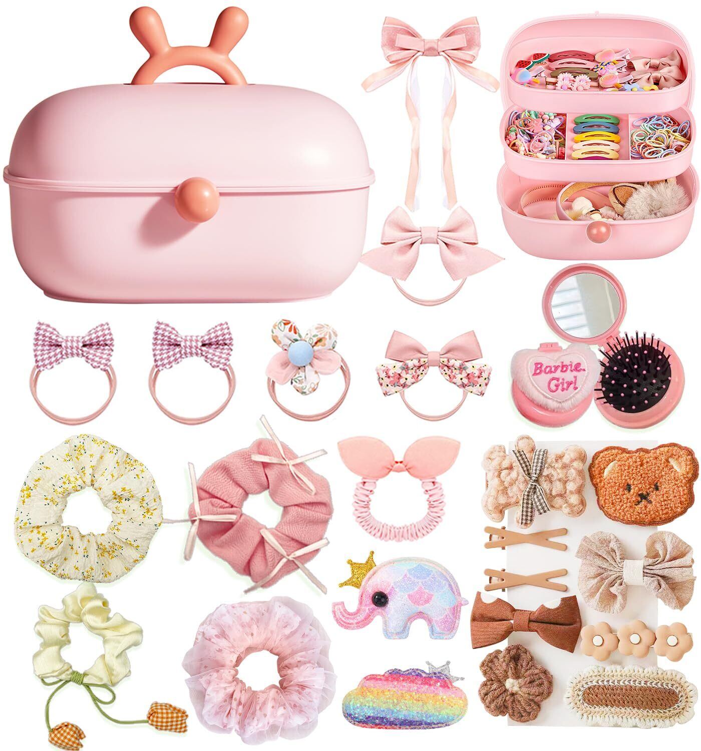 Luxureux 女の子 ヘアアクセサリーセット ヘアアクセサリー ケース 3層 キッズ 可愛い 小物入れ 3Dステッカー付き ヘアクリップ ヘアゴム 子供 おしゃれ カラフル 誕生日/クリスマス/入園式/卒園式/入学式/卒業式/子供の日/七五三/ギフト/ベビー1歳 2歳3歳4歳5歳6歳 小学生 (Cream-pink)
