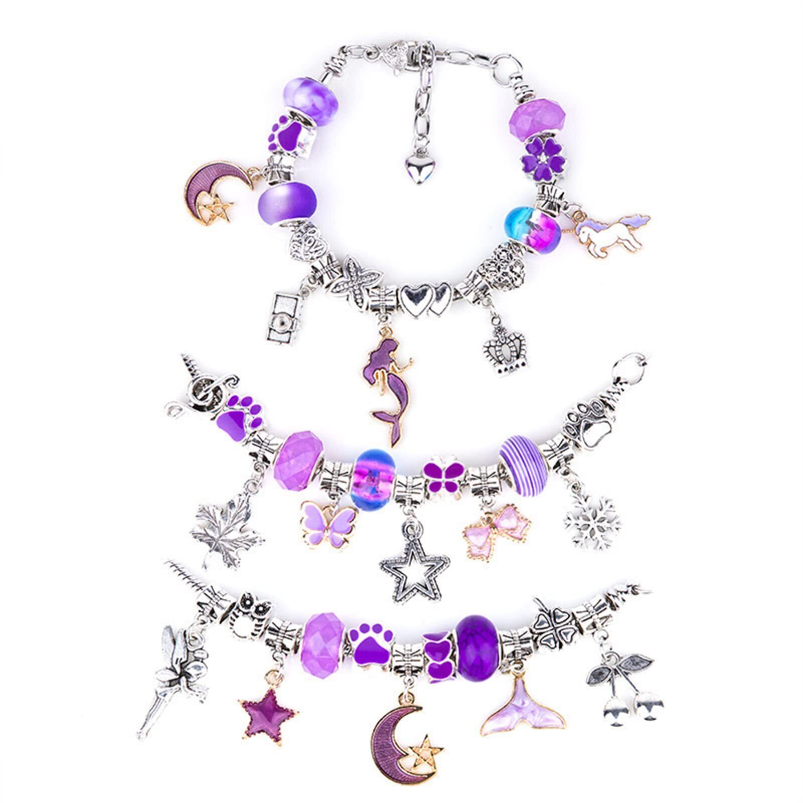 ◆[Sitengle アクセサリーキット ブレスレット作り 66点セット おしゃれ チャーム ビーズ遊び 誕生日 クリスマス プレゼント (パープル)]◆