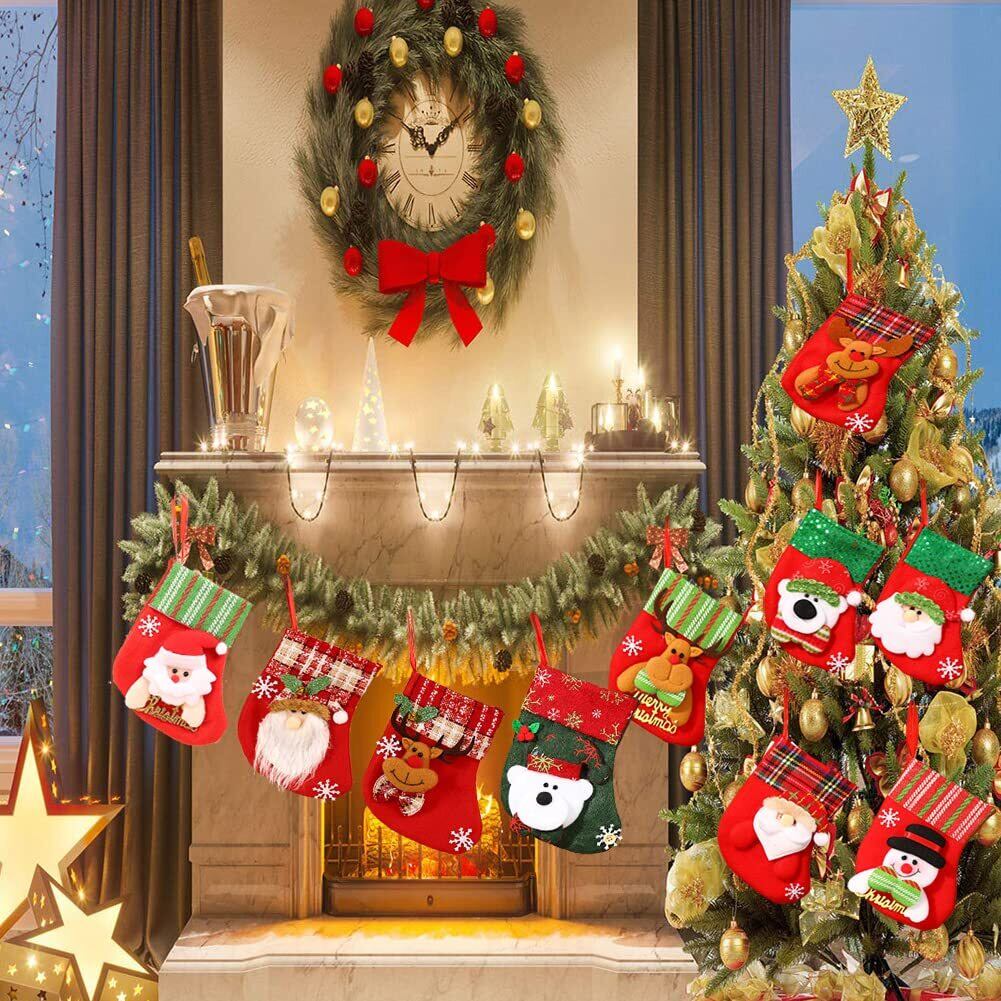 クリスマスの靴下 12枚セット クリスマス ソックス 3D 立体 靴下 サンタクロース 雪だるま 熊 トナカイ クリスマスツリー 暖炉飾り クリスマスプレゼント 新年祝い 飾り 可愛い プレゼント袋 ギフトバッグ お菓子 キャンディなど入れ 壁掛け 装飾