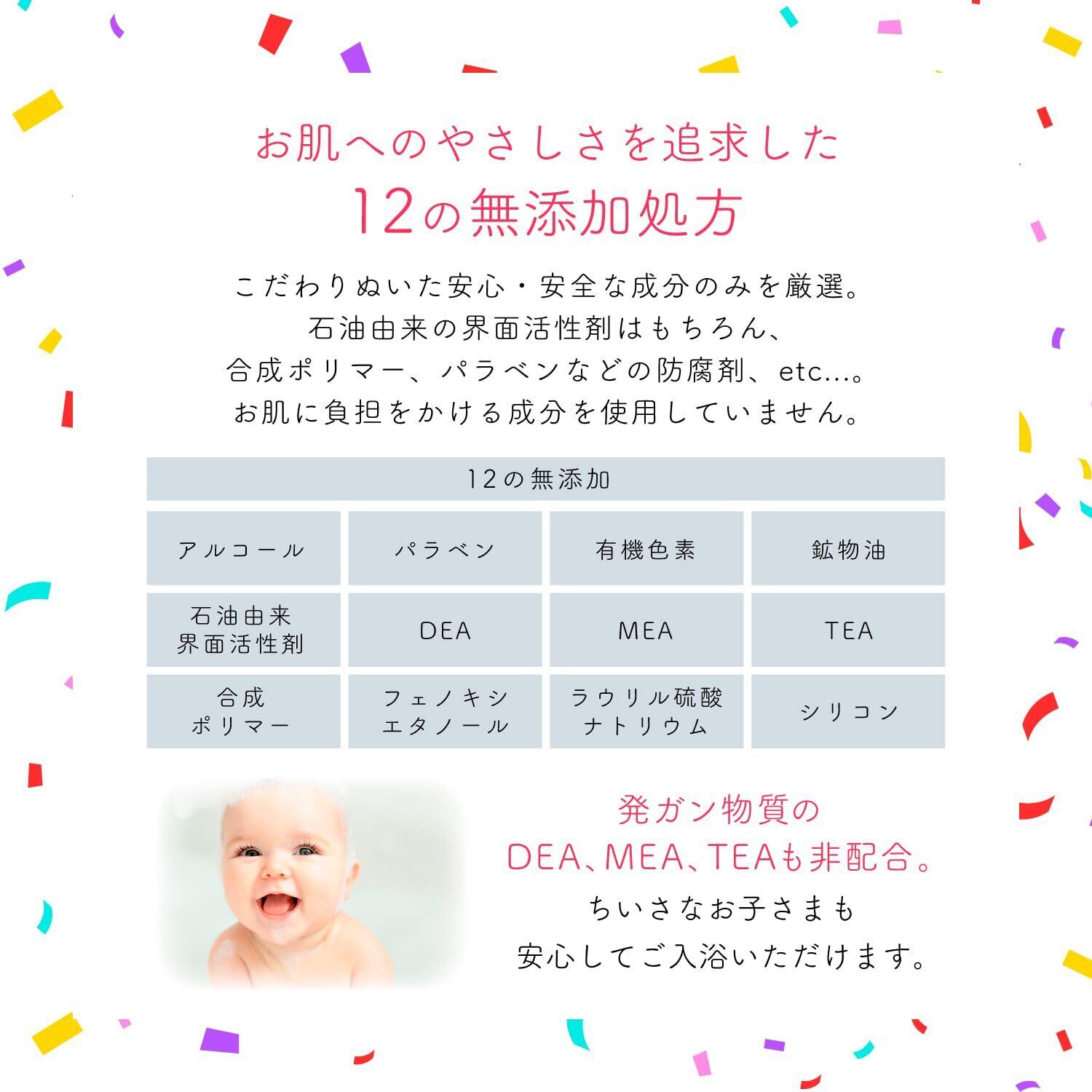 ✨【お肌へのやさしさを追求した12の無添加処方】安心・安全にこだわった成分のみを使用。石油由来の界面活性剤はもちろん、毛穴詰まりの原因となる合成ポリマー、パラベンなどの防腐剤、etc...。お肌に負担をかける成分を使用していません。