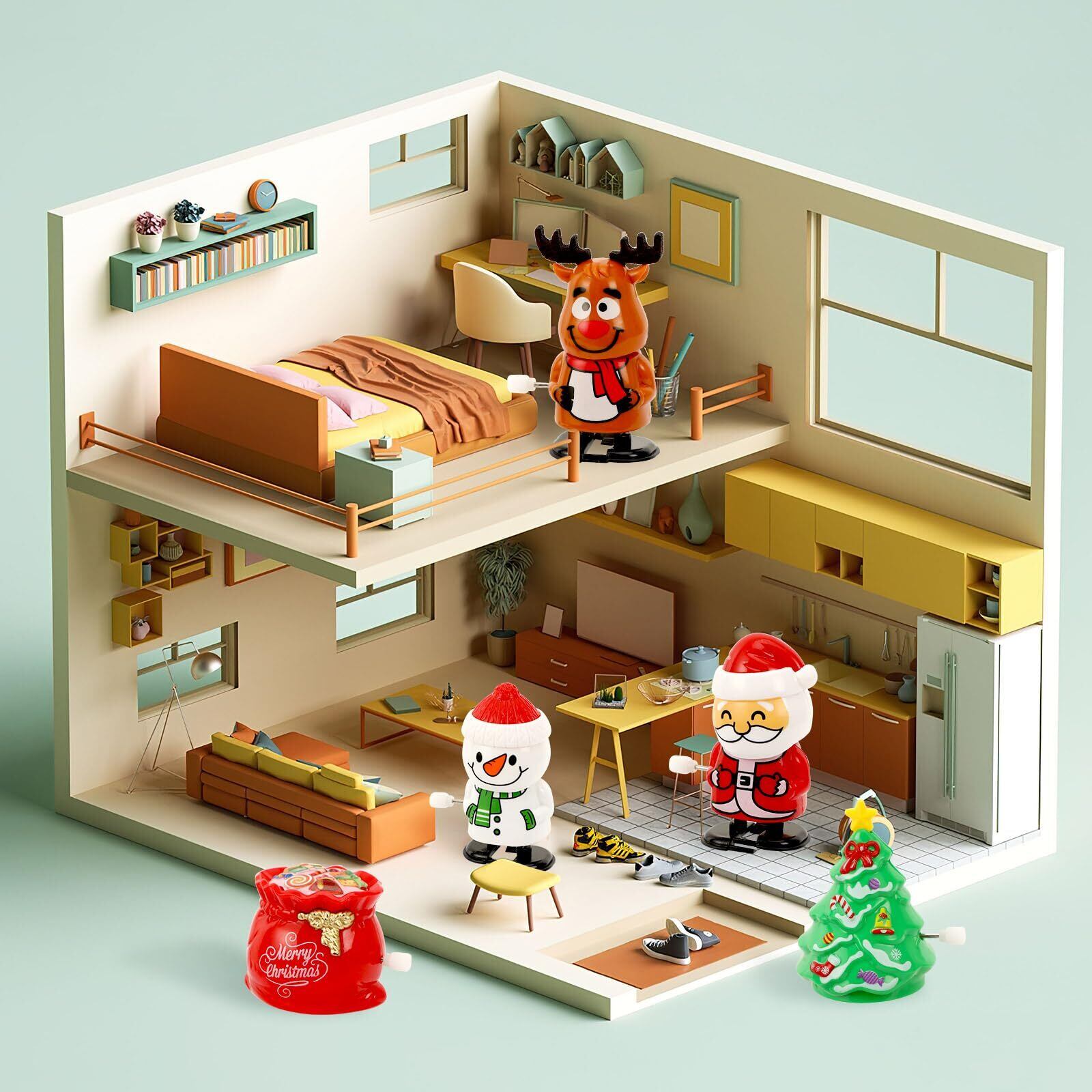 【クリスマスを楽しく彩るゼンマイおもちゃ5個セット!】