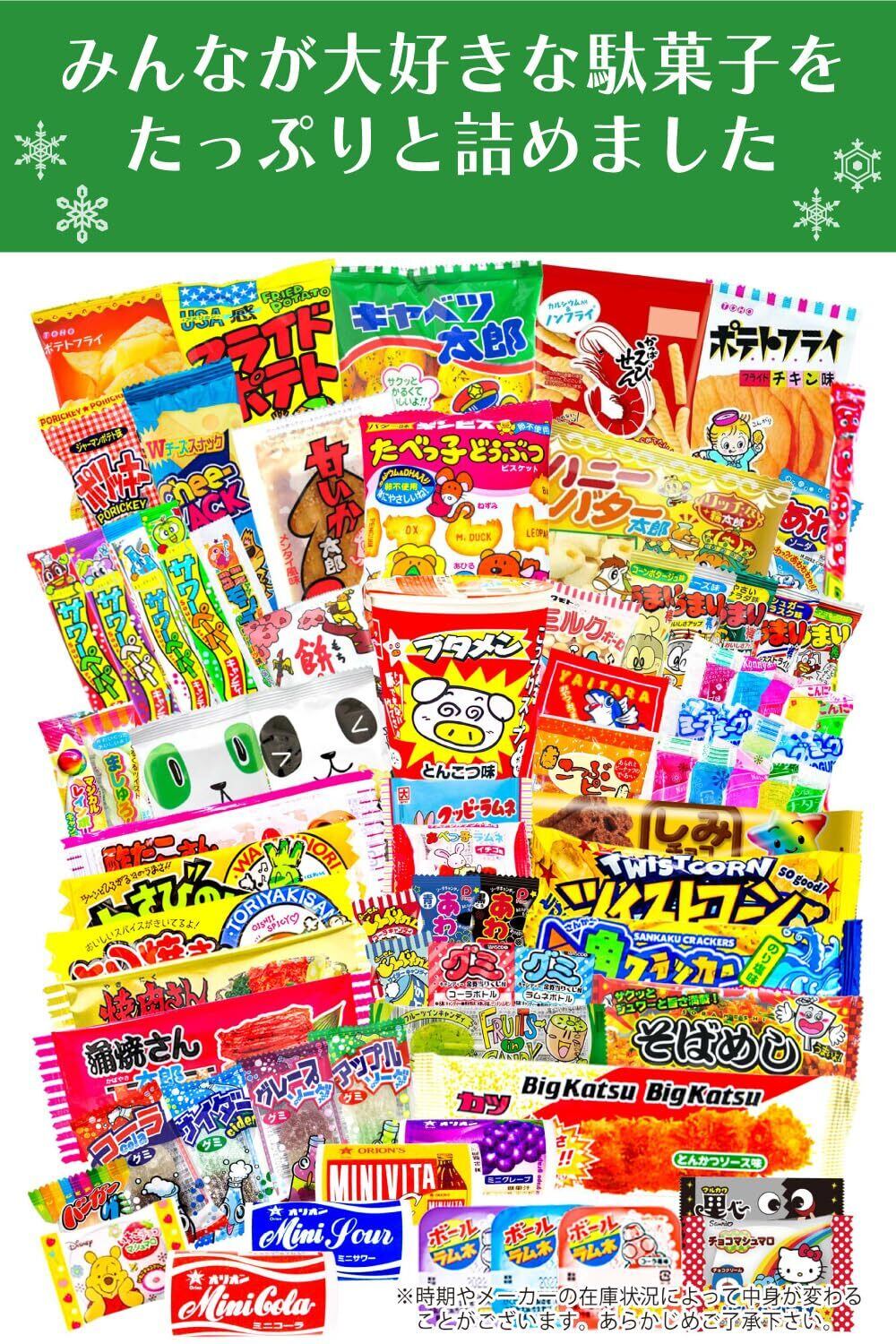 [駄菓子, 詰め合わせ, クリスマス, お菓子, ギフト, プレゼント, 宝箱, イベント, パーティー, 家族, 友人]