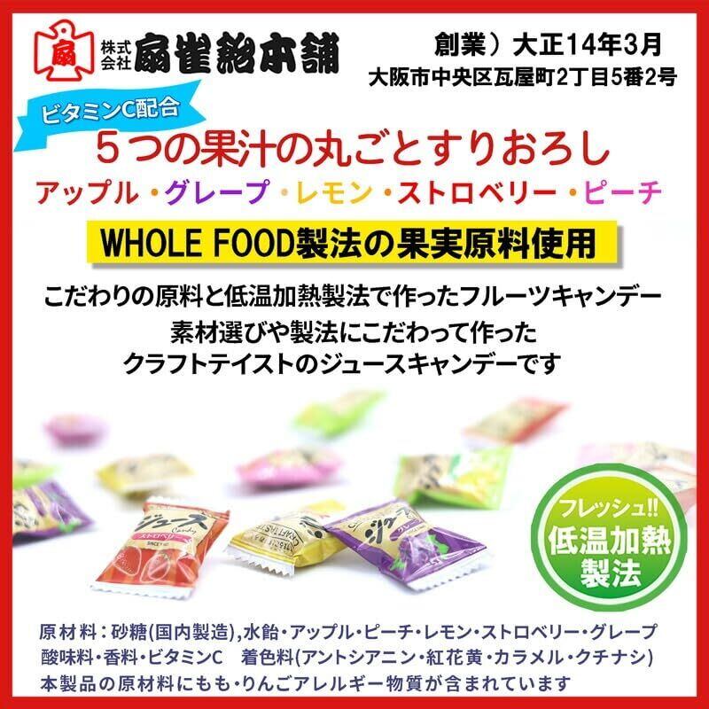 砂糖(国内製造)、水飴、アップル、ピーチ、レモン、ストロベリー、グレープ/酸味料、香料、ビタミンC、着色料(アントシアニン、紅花黄、カラメル、クチナシ)