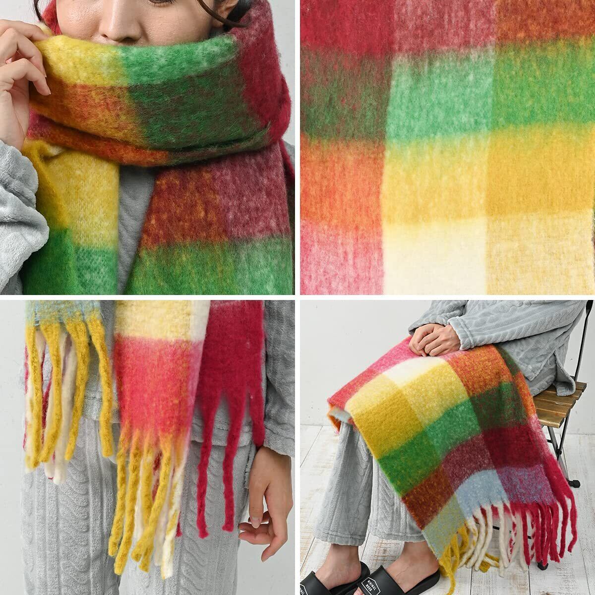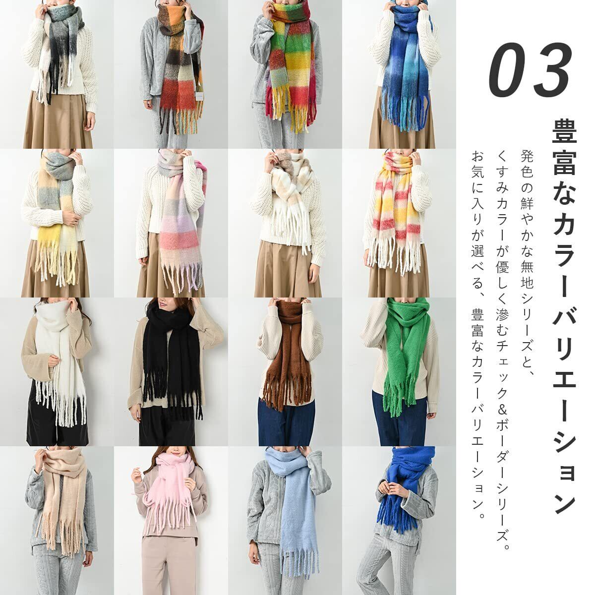[マフラー, レディース, 冬, ボリューム, ストール, 防寒, 無地, チェック, 厚手, カジュアル]