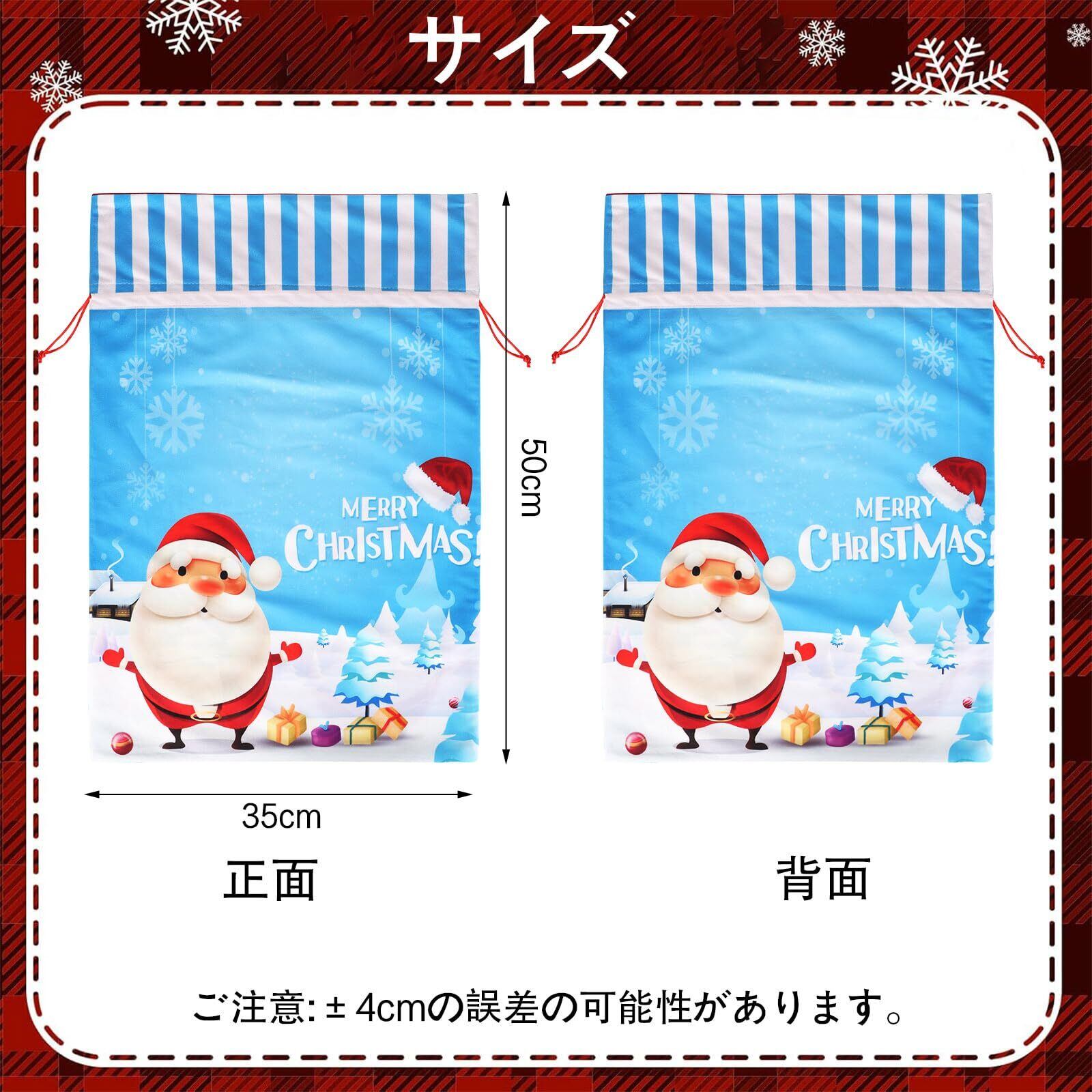 FINGOOO クリスマス 袋 ラッピング 大・35×50CM 巾着 バッグ サンタ袋 雑貨 収納 ギフト プレゼント 厚手 北欧風 おしゃれ 可愛い 青い 1個 (D)