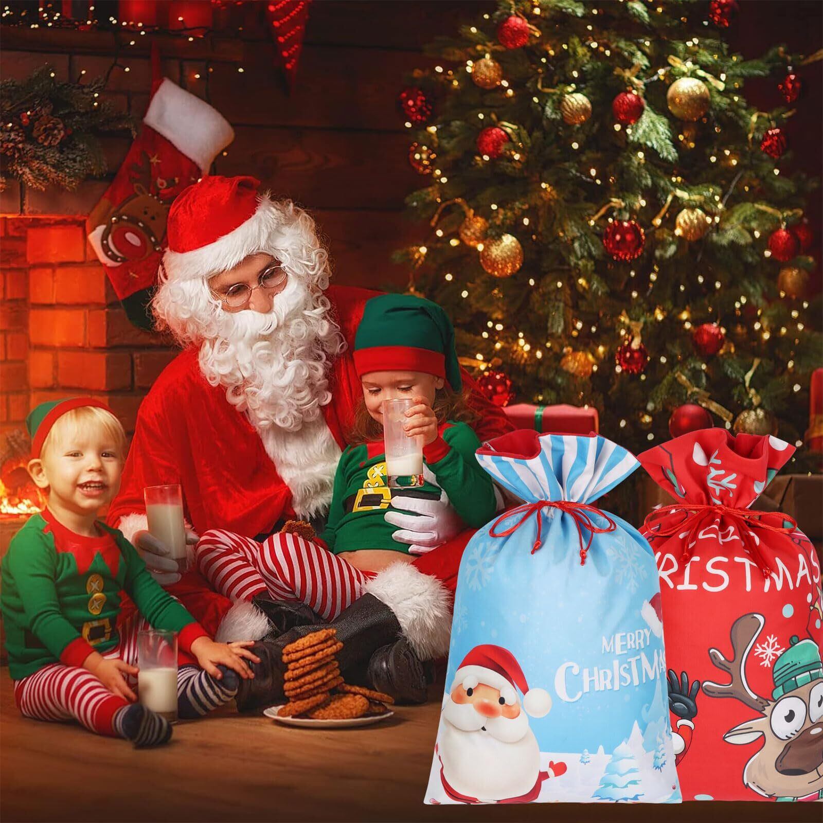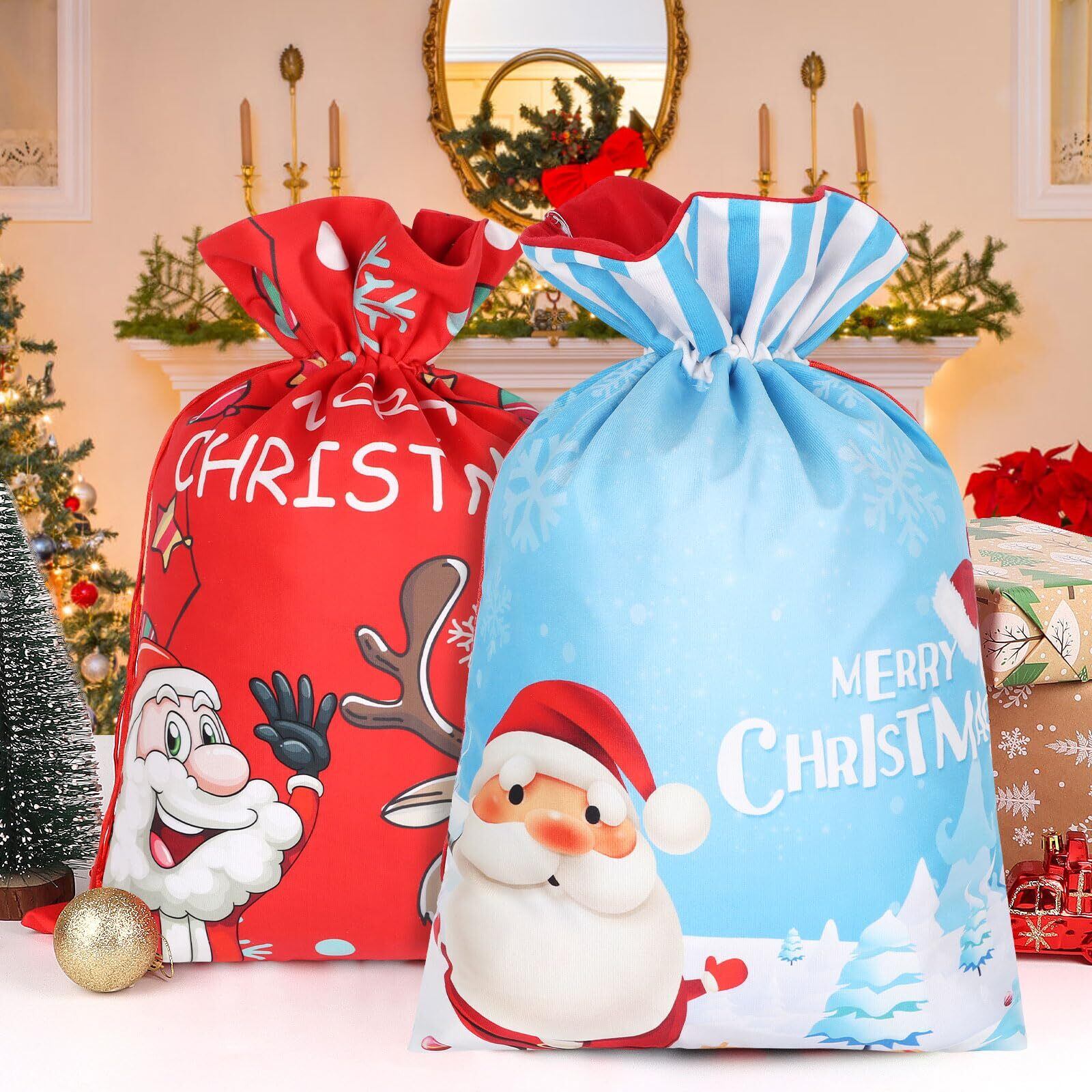 [FINGOOO, クリスマス, 袋, ラッピング, 巾着, バッグ, サンタ袋, 雑貨, 収納, ギフト, プレゼント, 厚手, 北欧風, おしゃれ, 可愛い, 青い]