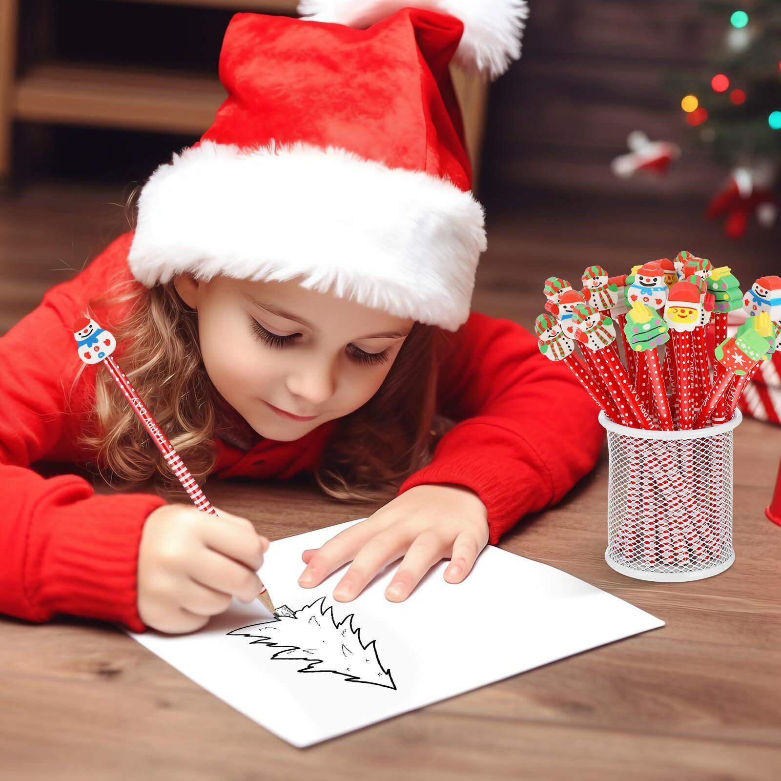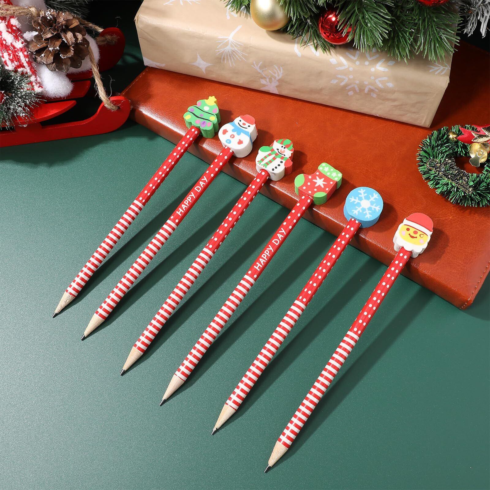【ホリデーペイント鉛筆】各鉛筆にはさまざまなクリスマステーマのさまざまな消しゴムが付いており、より多くのクリスマスサプライズを提供します。