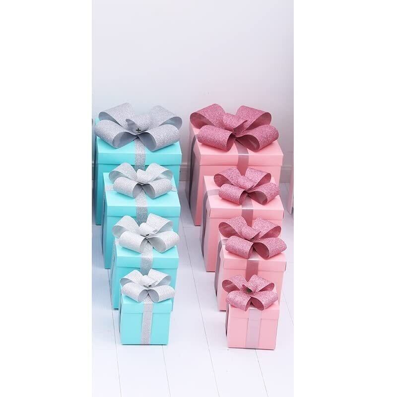 ギフトボックス 正方形ボックス ラッピングボックス ラッピング 箱 クリスマスプレゼント クリスマス飾り アクセサリー 蝶結び付き パッケージ 多用ケース 高級 大型 包装箱 ショッピング モール ウィンドウ レイアウトの小道具 (25cm, ピンク)