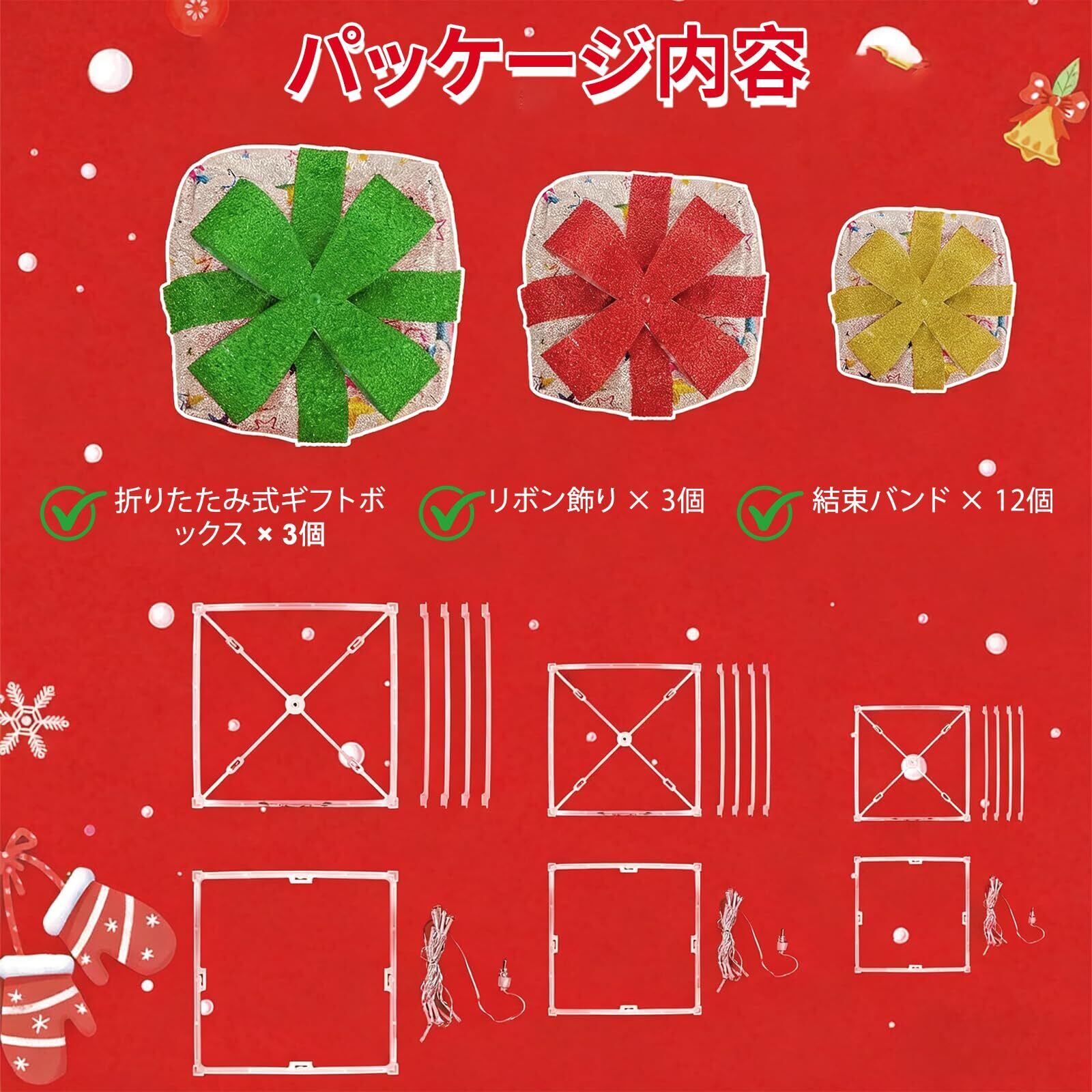 これらのギフトボックスは、クリスマスのプレゼントとして最適です。お子様から大人まで、家族や友達とのパーティーシーンを彩るアイテムとして活躍します。特別な日の演出にぜひご利用ください。発見する喜びを味わうチャンスです!