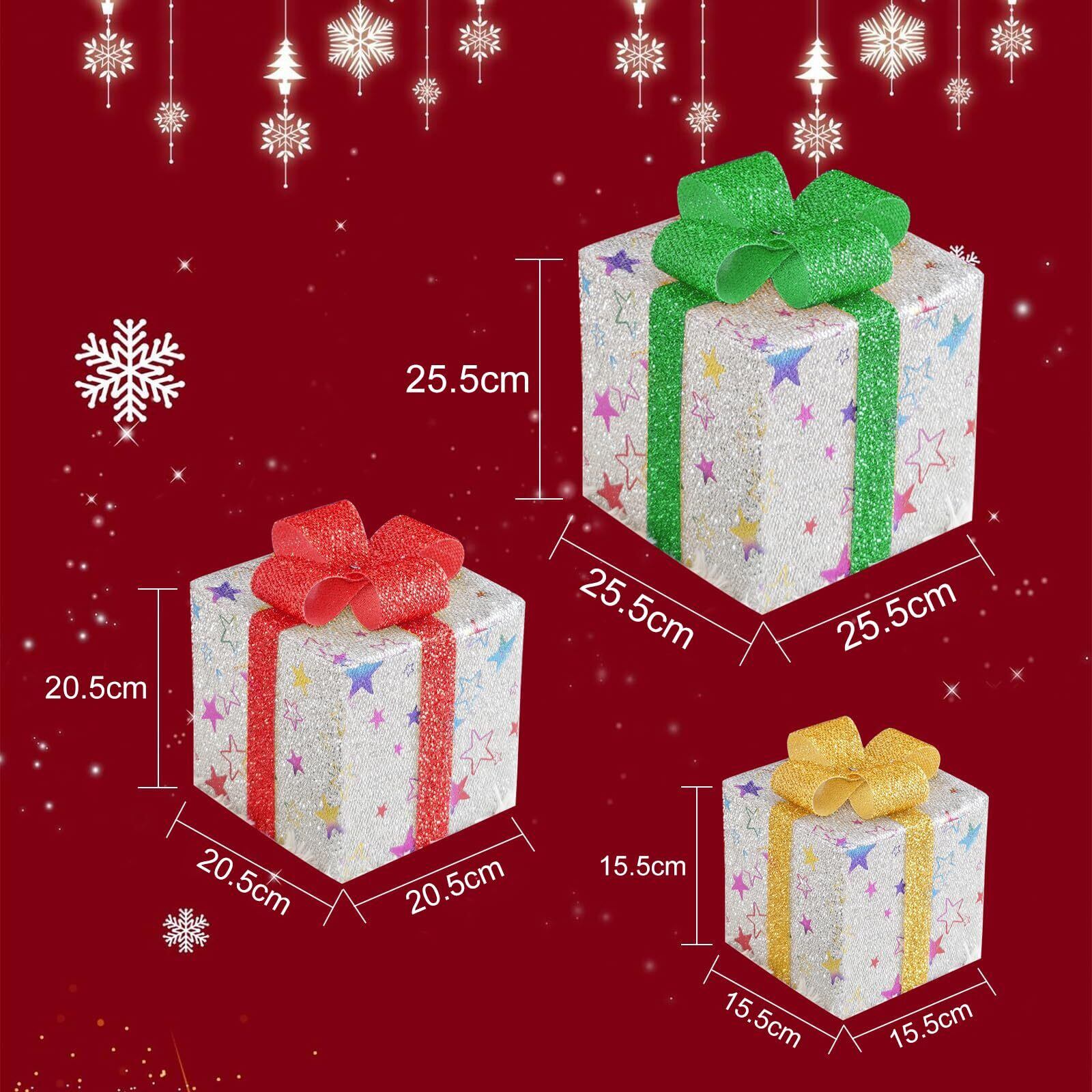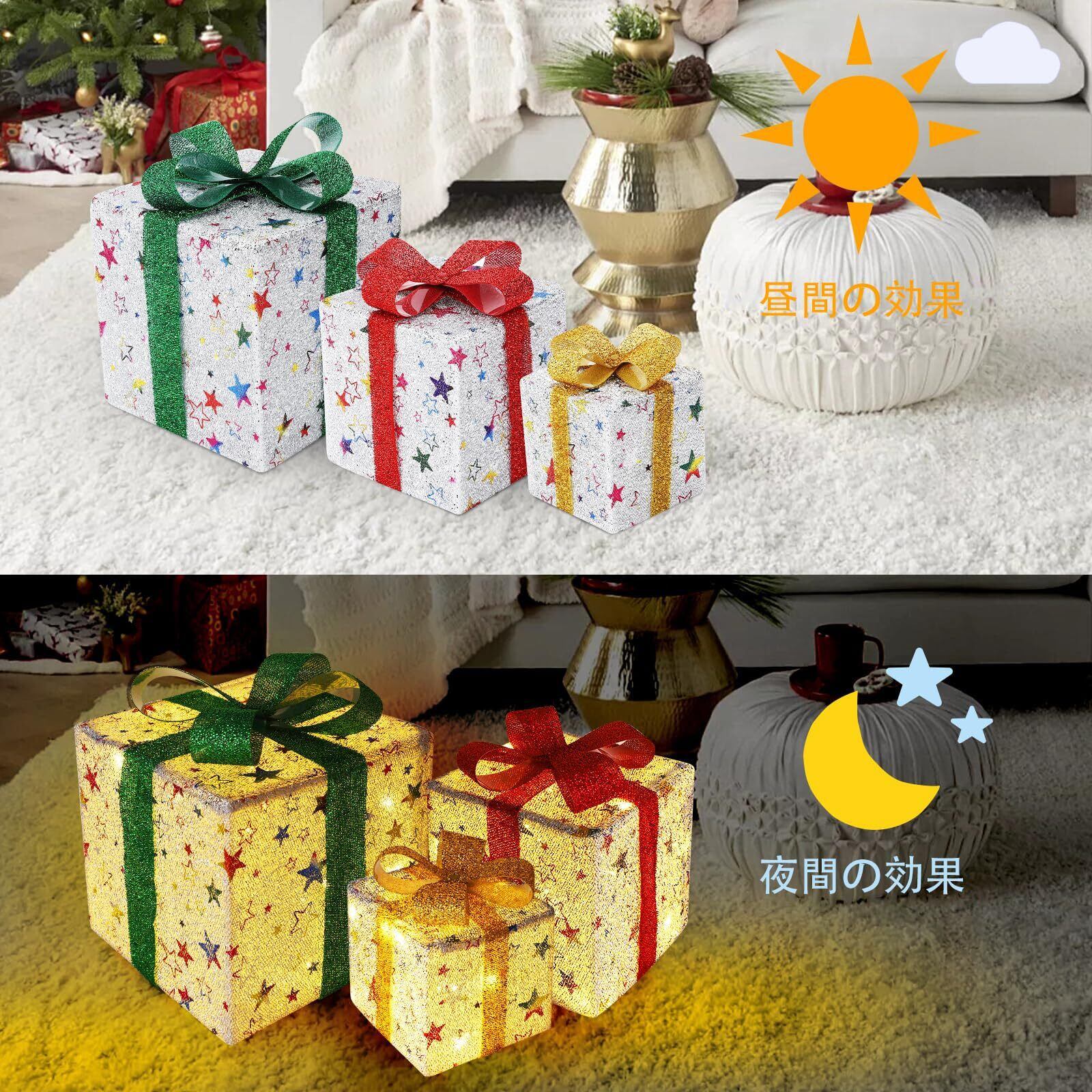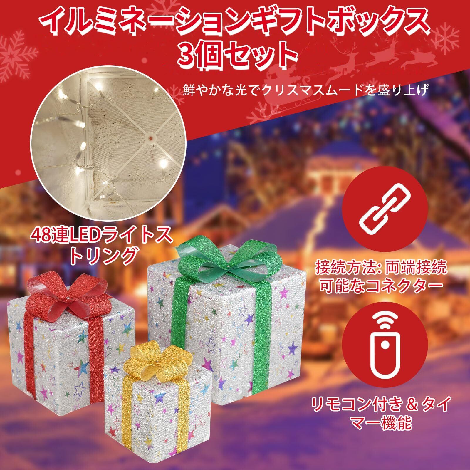 [クリスマスプレゼントボックス, LEDライト, 3個セット, クリスマス, ギフトボックス, イルミネーション, リモコン, 点灯モード, タイマー機能, 防水, インテリア, 屋外, DIY, S&M&L, 単3電池, 電池別売り]