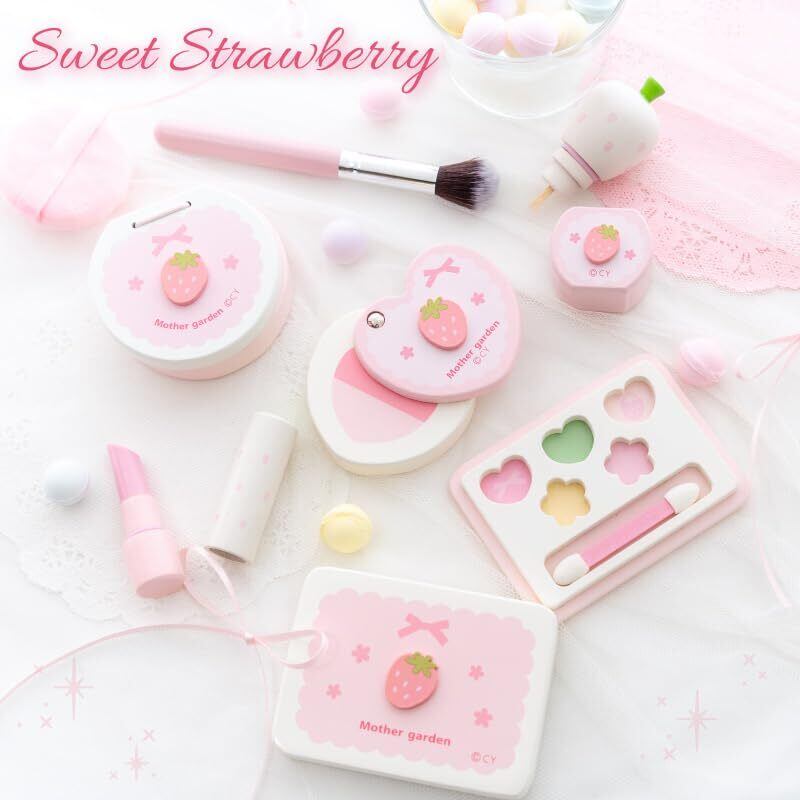 [マザーガーデン, おままごと, 色がつかない, メイク, ポーチセット, スウィートストロベリー, 木製, おままごとセット, メイクセット, 3歳, 女の子, プレゼント, ままごと, おもちゃ]