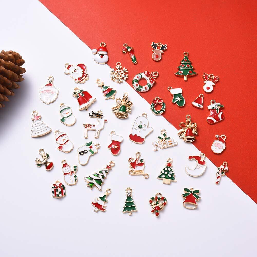 ◆TOYMYTOY クリスマス 飾り クリスマスツリー オーナメント 飾り クリスマス 置物 DIY 風景置物 庭盆栽装飾 クリスマスプレゼント クリスマス雑貨 テーブル ミニチュア 小道具 クリスマス イヤリング 装飾パーツ 38個入れ◆