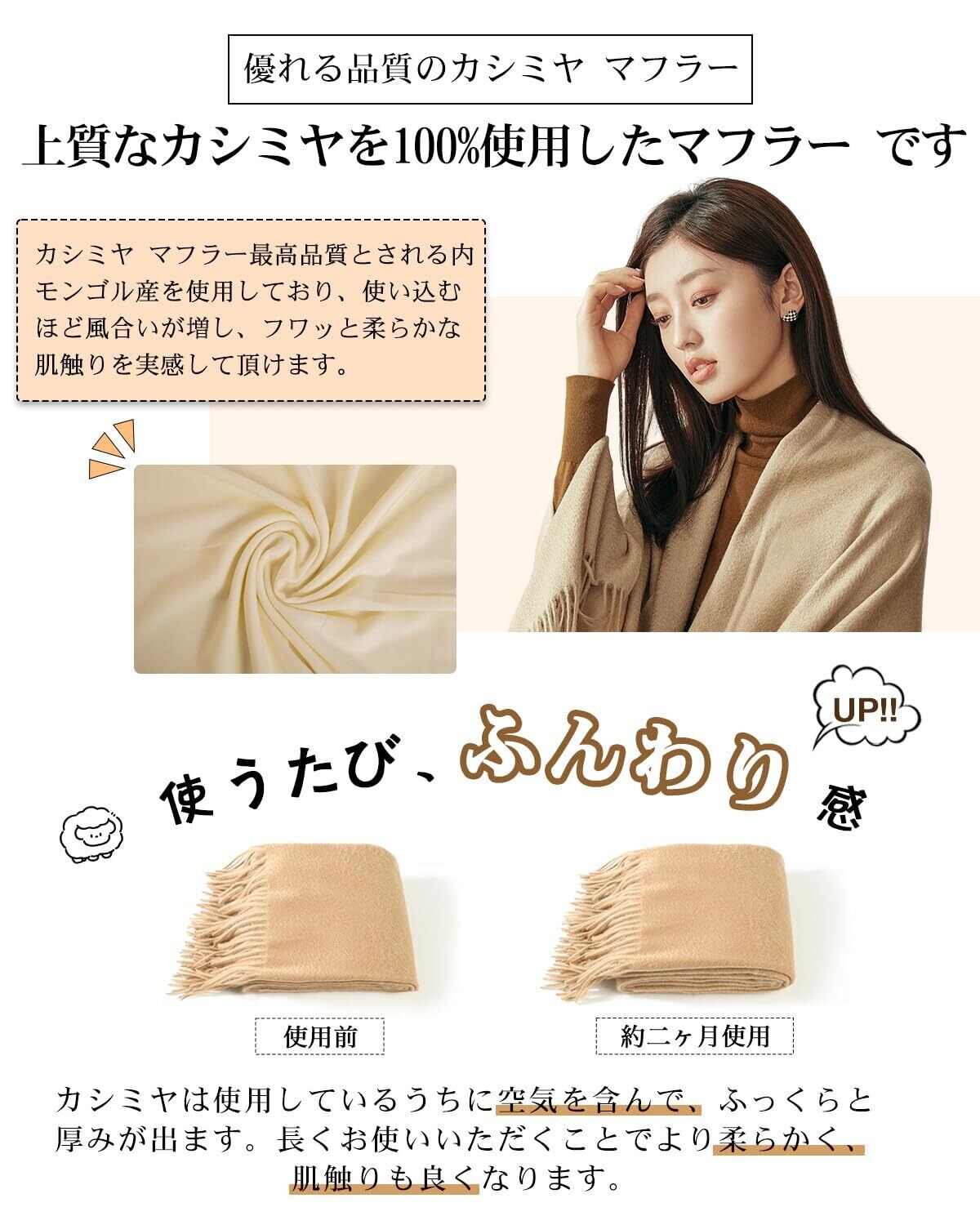 【優れる品質のカシミヤ マフラー】上質なカシミヤを100%使用したマフラー レディースです。カシミヤ マフラー最高品質とされる内モンゴル産を使用しており、使い込むほど風合いが増し、フワッと柔らかな肌触りを実感して頂けます。 また、日本での品質試験鑑定済です。 サイズ(全長)長さ約210cm×幅約70cm(フリンジ10cm × 2含む)。重量約310~約320g ※天然素材を使用しておりますので、サイズや重量に個体差が出る場合がございます。あらかじめご了承の上お買い求めください。