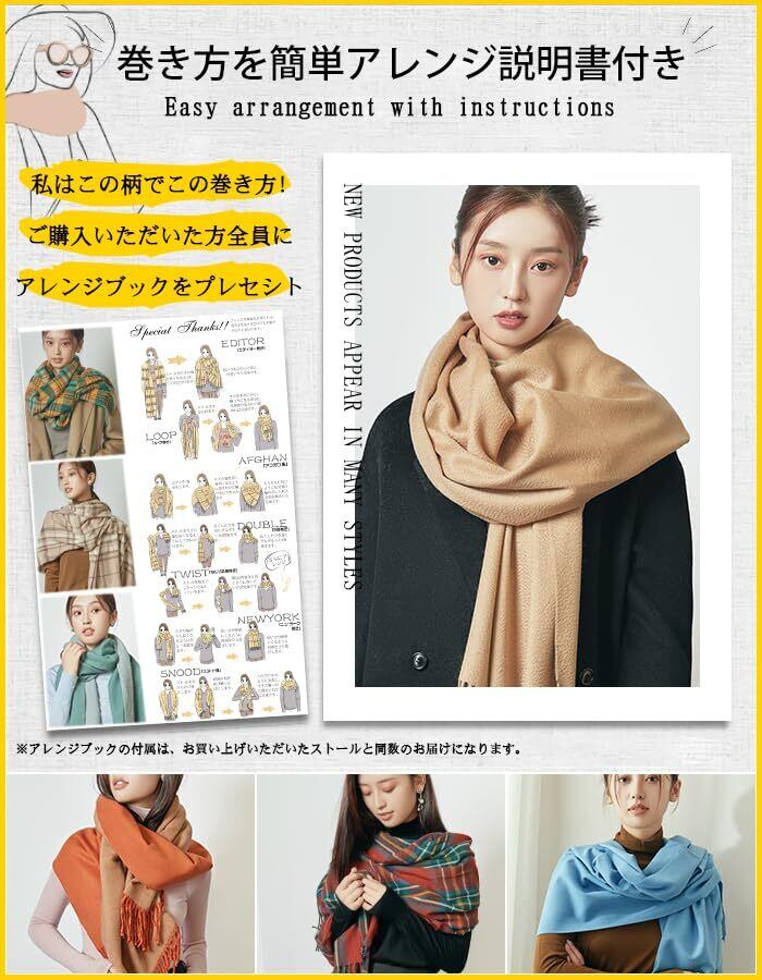 [カシミヤ, マフラー, レディース, 大判, 厚手, ストール, スカーフ, 誕生日プレゼント, クリスマスプレゼント, 男女兼用]