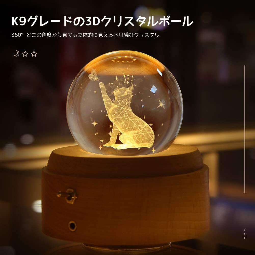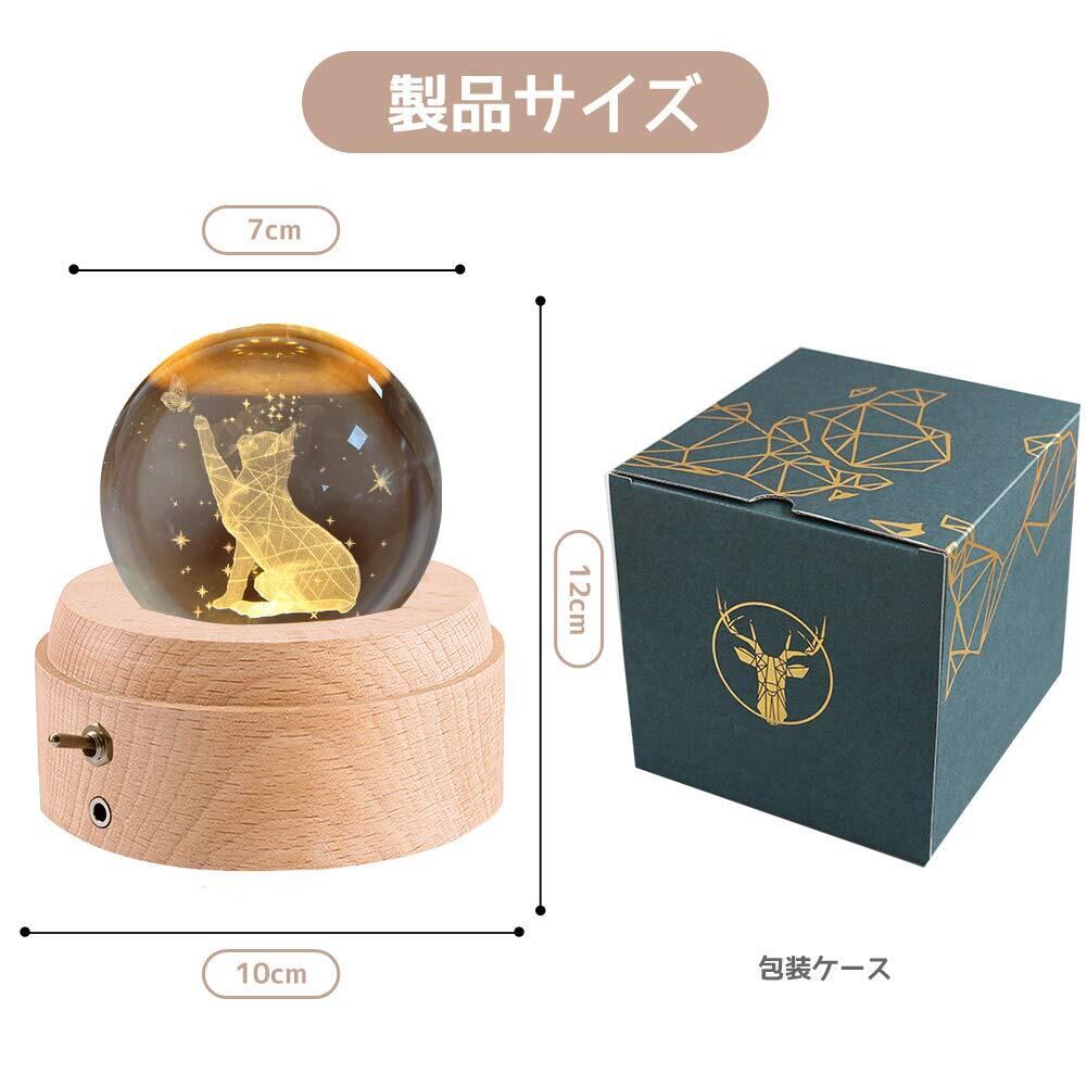 オルゴールはK9クリスタルで作られています。透明で美しい上質なクリスタルボールの内部に、レーザー光線により三次元の「わいい猫」画像を加工しております。芸術的な光と音の彫刻品!いつまでも、変わらぬ音とメロディーであなたの大切な思い出や自分時間をお守りします。曲目:ジブリでは初作品の天空の城ラピュタのテーマ『君をのせて』。
