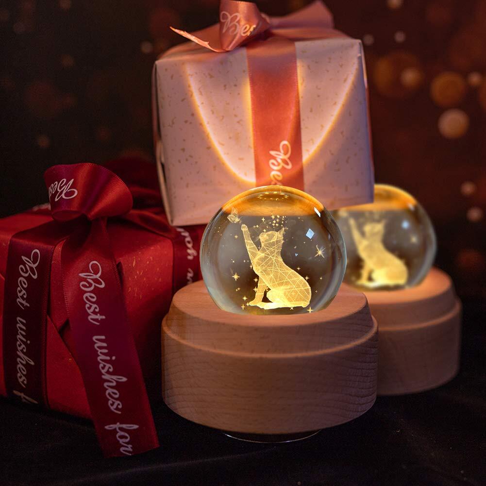 オルゴール 【正規品】 誕生日プレゼント 可愛い ねこ バタフライ クリスタル ボール クリスマス ギフト スノードーム バレンタインデー 月のランプ 彼女 間接照明 ベッドサイドランプ LEDライト USB充電 投影機能 インテリア おしゃれ 木製 手作り結婚祝い 卒業祝い 記念日 女性 雑貨 かわいい 雰囲気 癒しグッズ 投影効果 曲目:君をのせて