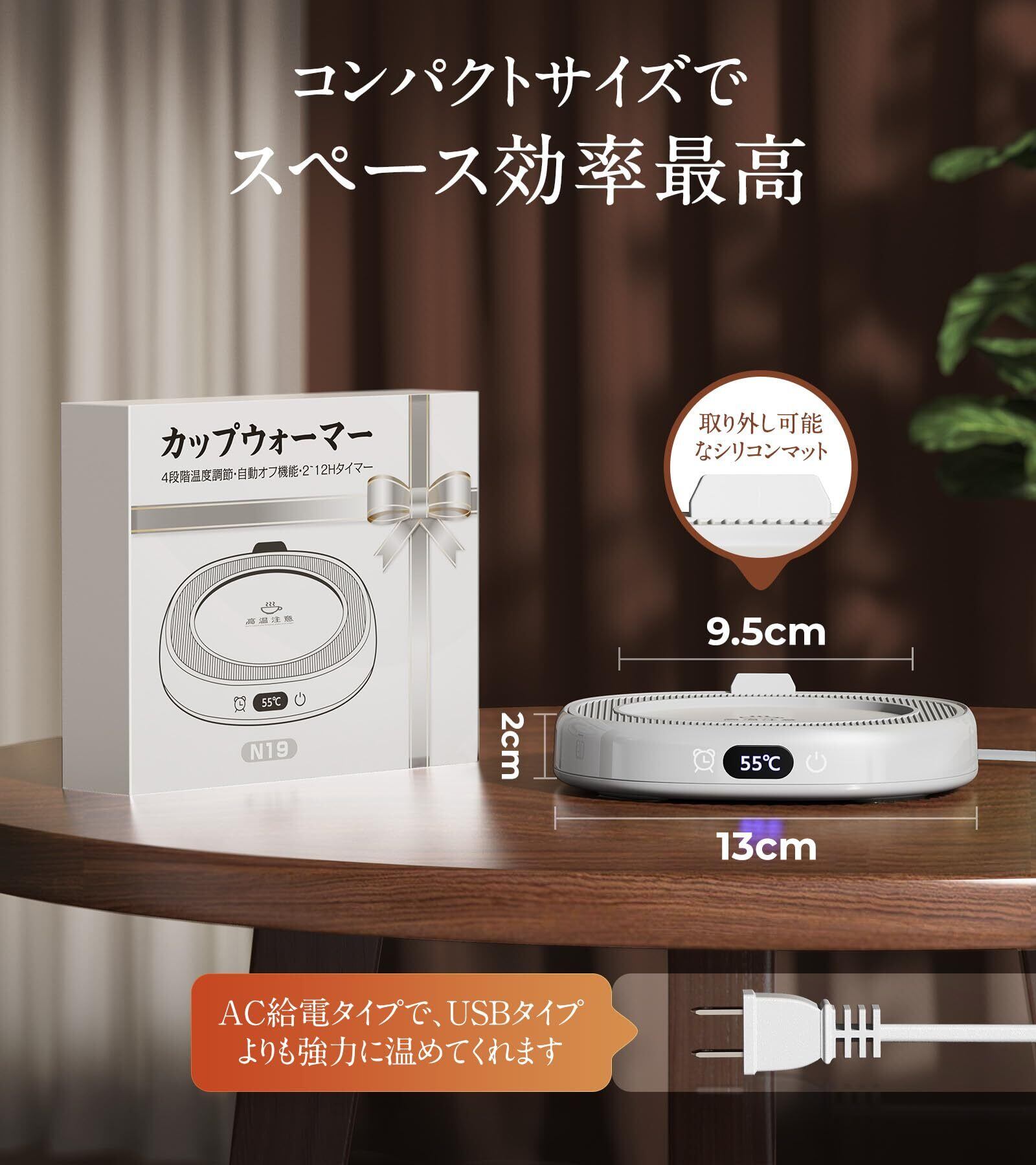 [カップウォーマー, コーヒー, お茶, 保温, タイマー, 静音, 急速加熱, 飲み物, ペットボトル, ギフト, プレゼント, オフィス, 家庭]