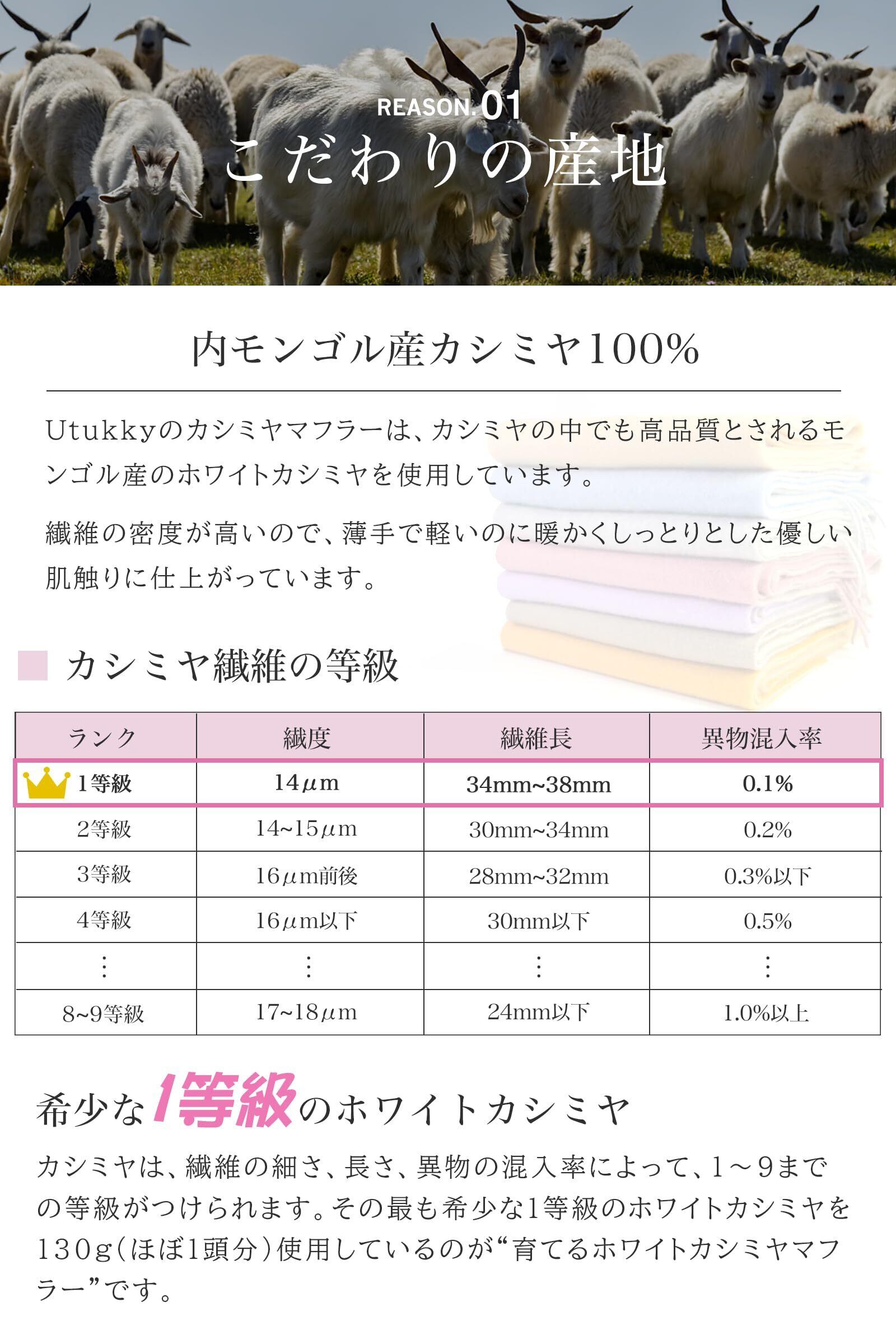 「繊維の宝石」カシミヤ上質な素材感とナチュラルでベーシックだから、フル活用できるのが魅力です。 カシミヤのうぶ毛は非常に細く、手触りは柔らかく、絹のような光沢と独特のヌメリがあり、保湿性と吸湿性が高いのが特徴です。