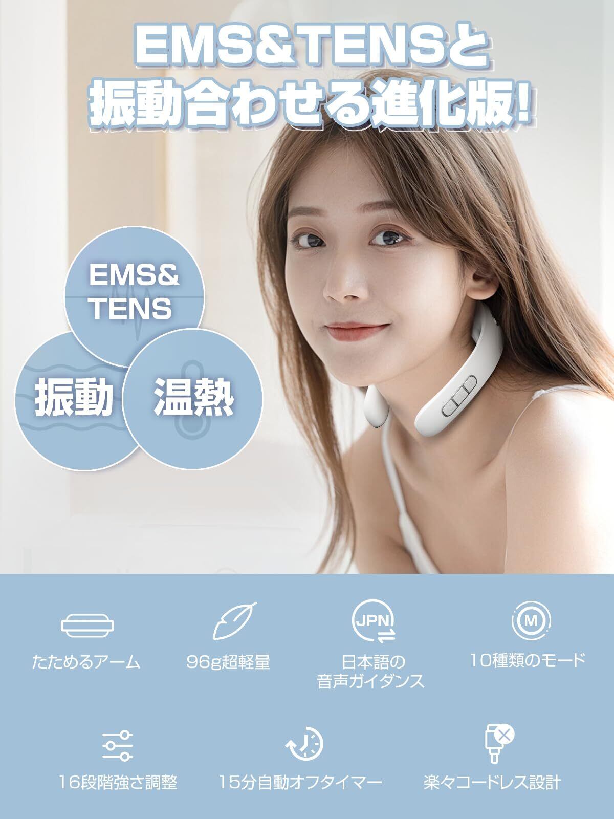 [ネックケア, リラクゼーション器, EMS, TENS, 温め, 振動, プレゼント, ギフト, 男女兼用, 日本語説明書]