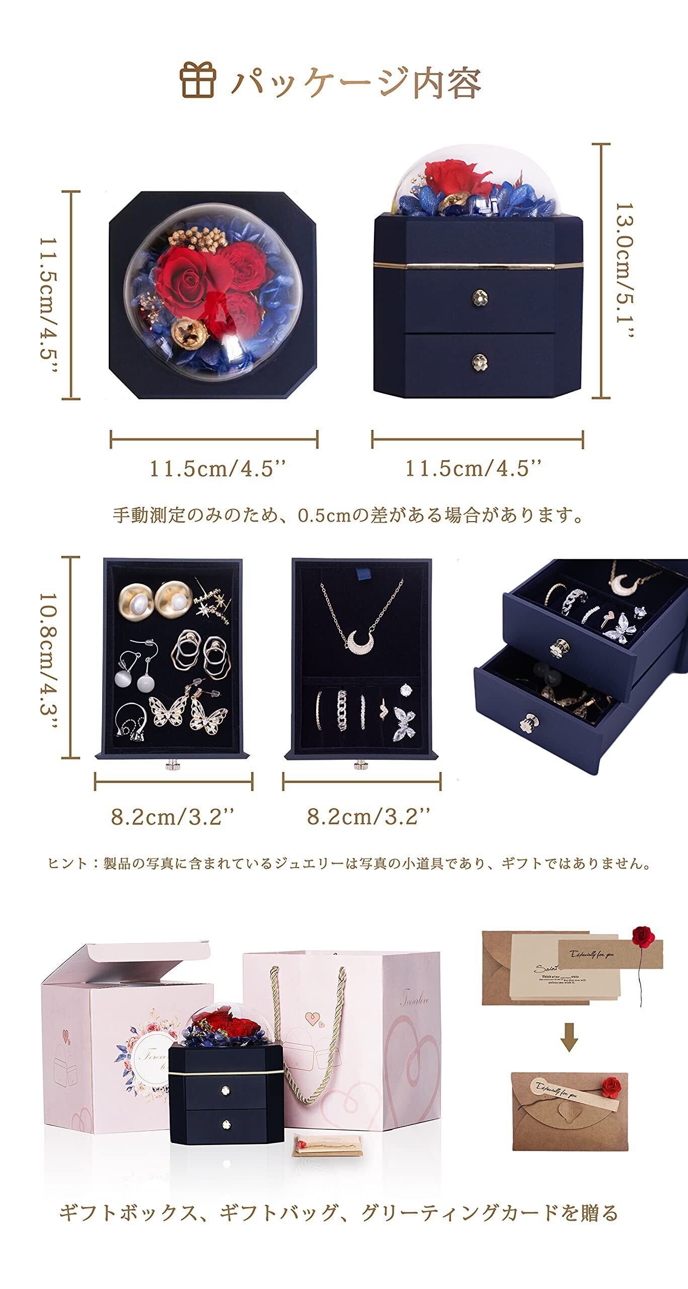 贈り物に最適:ほとんどの女性は同時に花と美しい宝石箱が好きです。それでも彼女に贈るギフトがわからない場合は、この商品を選択してください。また、素敵なギフトバッグとグリーティングカードを差し上げます。入学、卒業、誕生日、母の日、クリスマス、結婚記念日、バレンタインデー、ホワイトデー、プロポーズ、告白、結婚式、送別会、敬老の日、還暦、昇進などに素敵でロマンチックな贈り物になります。