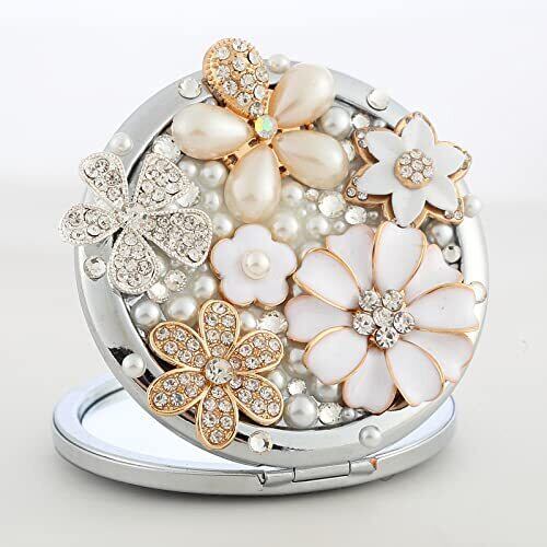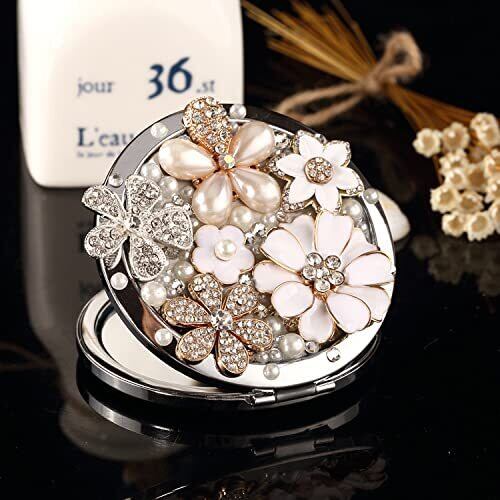 【贈り物に最適】キラキラ 両面のポケットミラーで、異なる種類のストーンと人工パールが施されており、非常に華やかです。取り出すとすぐに会場の注目を集めます。両親に、おじいちゃんやおばあちゃんへ。友達の誕生日に人気のプレゼント。結婚する友人へ。転勤や退職で離れる同僚へ。お世話になった先輩や先生へ。