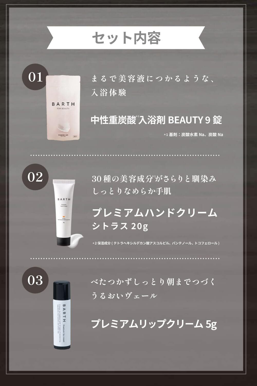 BARTH バース Beauty Travel Set ポーチ付き ( 入浴料BEAUTY 9錠 + ミニハンドクリーム シトラス + リップクリーム ) トラベルセット