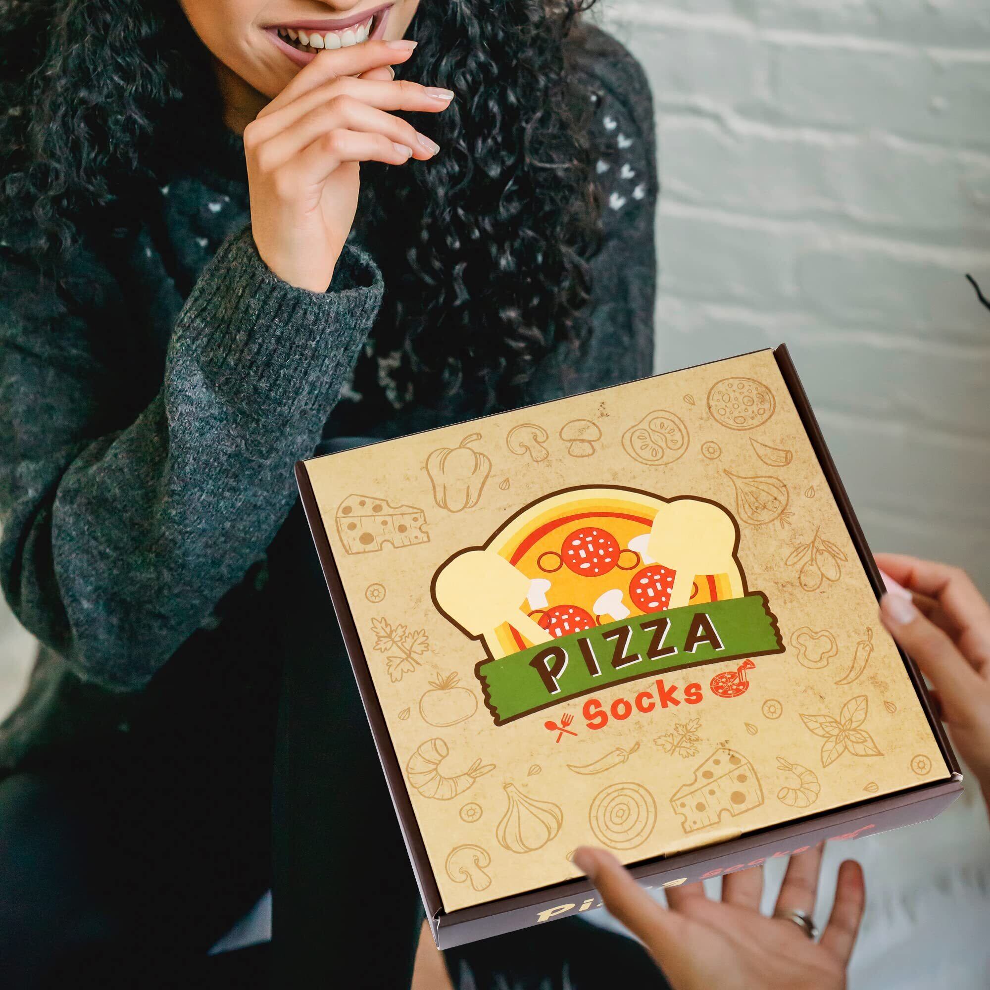おもしろピザソックス:あなたはピザの大ファンですか。ピザボックスに靴下があると誰が思ったでしょう。製品が紙に包まれている彼と、レストランからまっすぐにハンバーガーのように、カラフルなオリジナルの箱に包まれています。驚くべき効果! これは、ハンバーガーやクリエイティブアイテムが好きな人には素晴らしいプレゼントをです!誰もがこれらのハンバーガーの靴下の箱から多くの楽しみを得るでしょう、そして彼らはトピックになります。