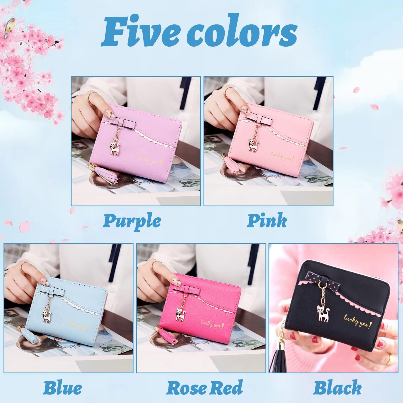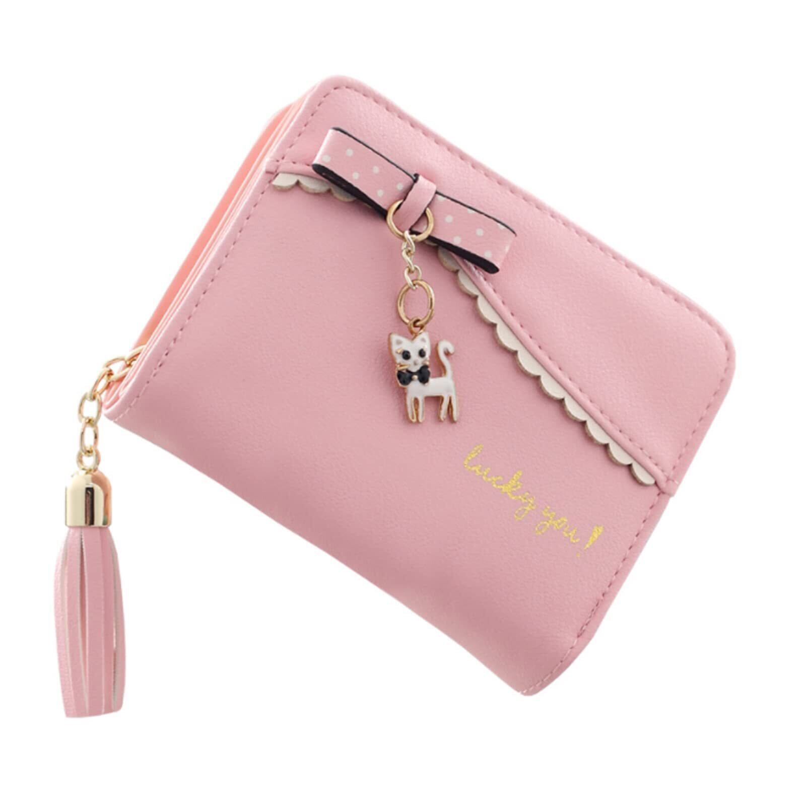 [Kingsie] 財布 ミニ財布 レディース 短財布 二つ折り かわいい 猫チャーム タッセル付き 財布 ウォレット カード入れ 小銭入れ 女の子 女性用 プレゼント (ピンク)