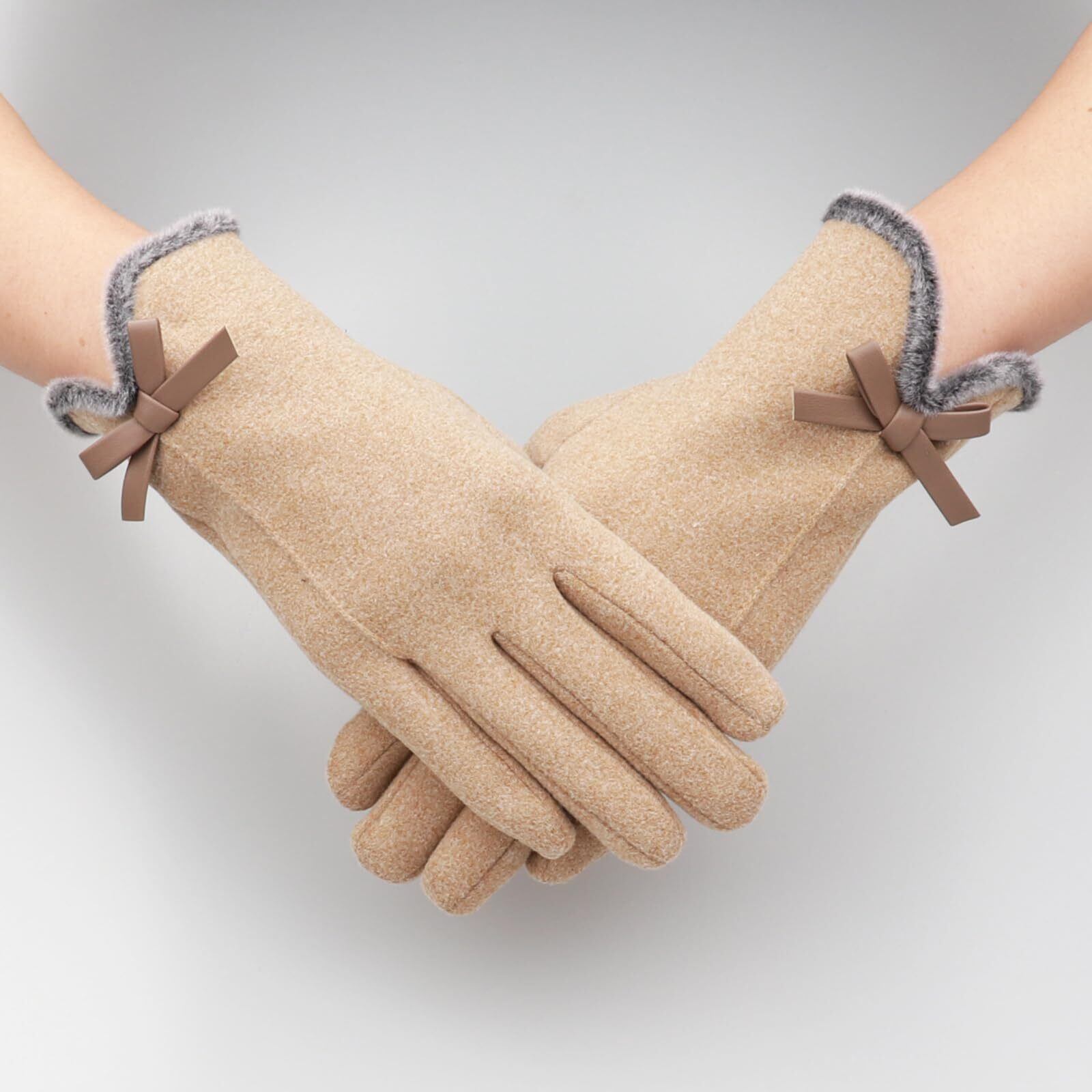 【冬のおしゃれを楽しむ、かわいいリボン付きスマホ対応手袋!】