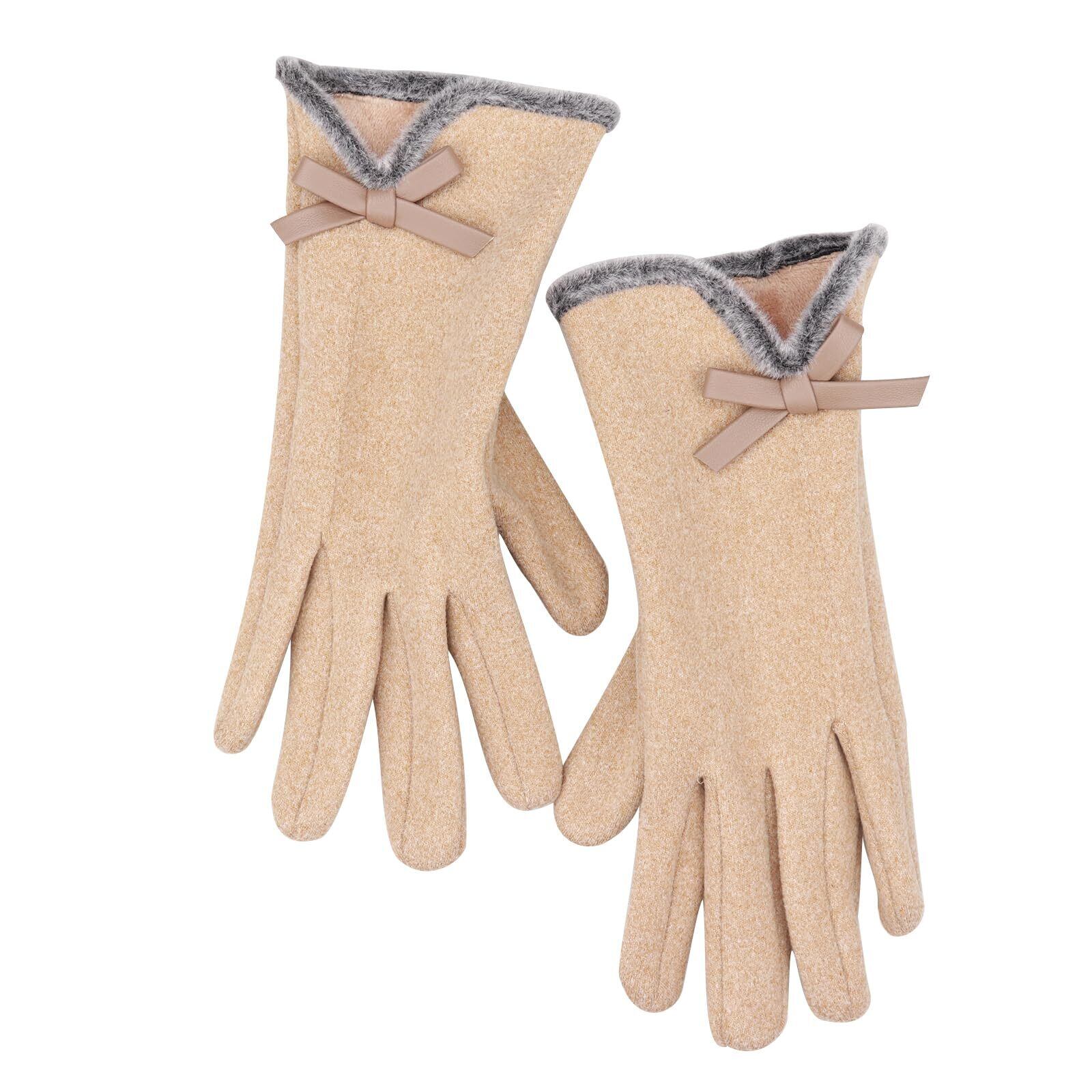 [Lycharoty] 手袋 レディース 冬 防寒手袋 スマホ対応 女性 暖かい かわいい オシャレ リボン 薄手 クリスマスプレゼント 誕生日 プレゼント 3色展開