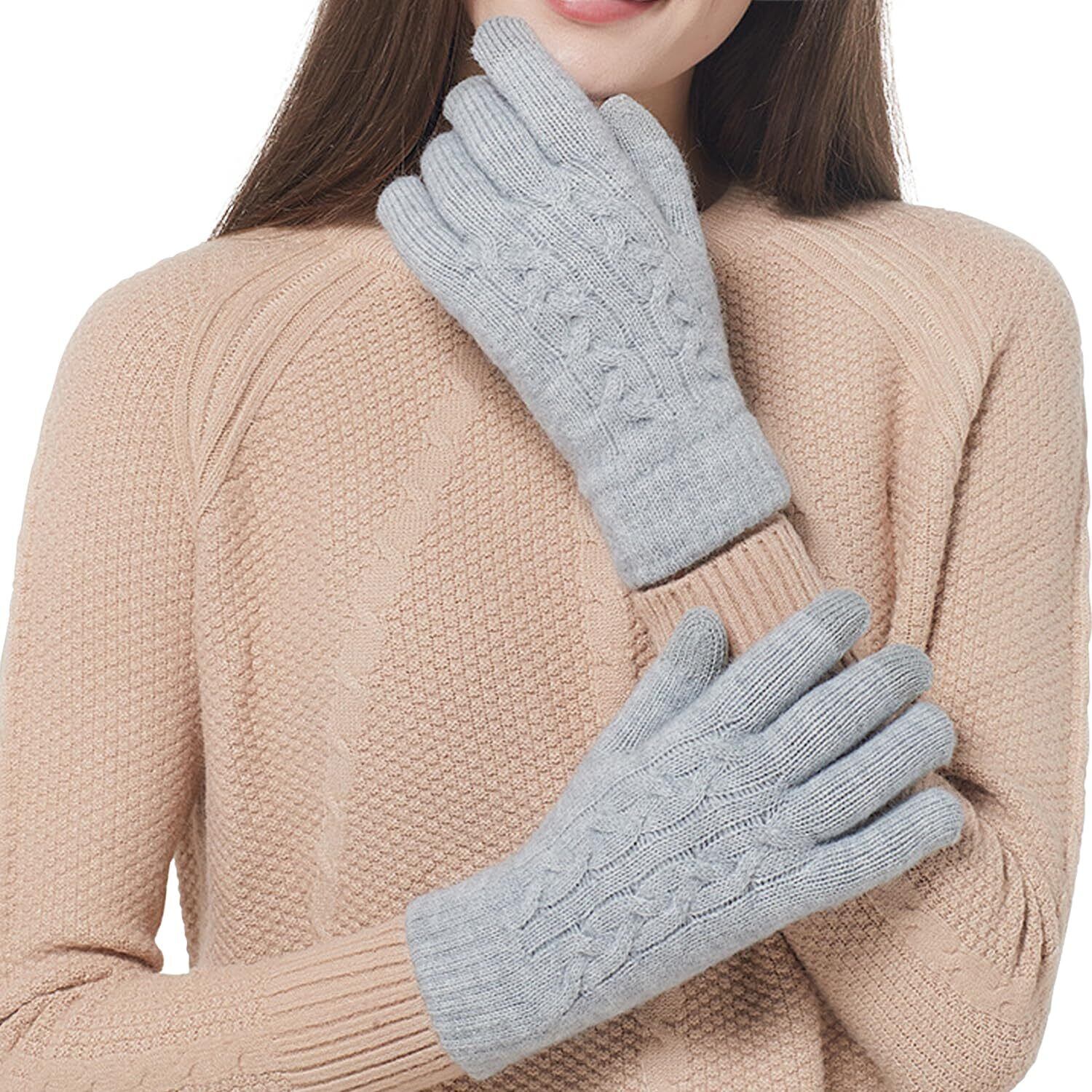 [Pawinpaw] レディース 冬 防寒 暖かい手袋【スマホ対応/ふわふわ裏起毛/厚手/柔らかい】 ニット かわいい 無地 防寒グローブ おしゃれ 通勤 自転車 バイク キャンプ 誕生日&クリスマスプレゼント 女性用