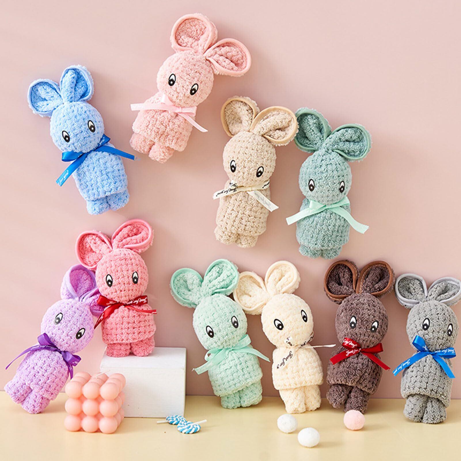 【高品質な素材】吸水性が抜群、肌触りが優しいふわふわ素材を使用しております。タオルサイズ:30cm*30cm。複数のかわいいカラー揃えております。4種類のセット(ウサギ11個セット・ウサギ22個セット・パールウサギ8個セット・パールウサギ12個セット)からお選びいただけます。