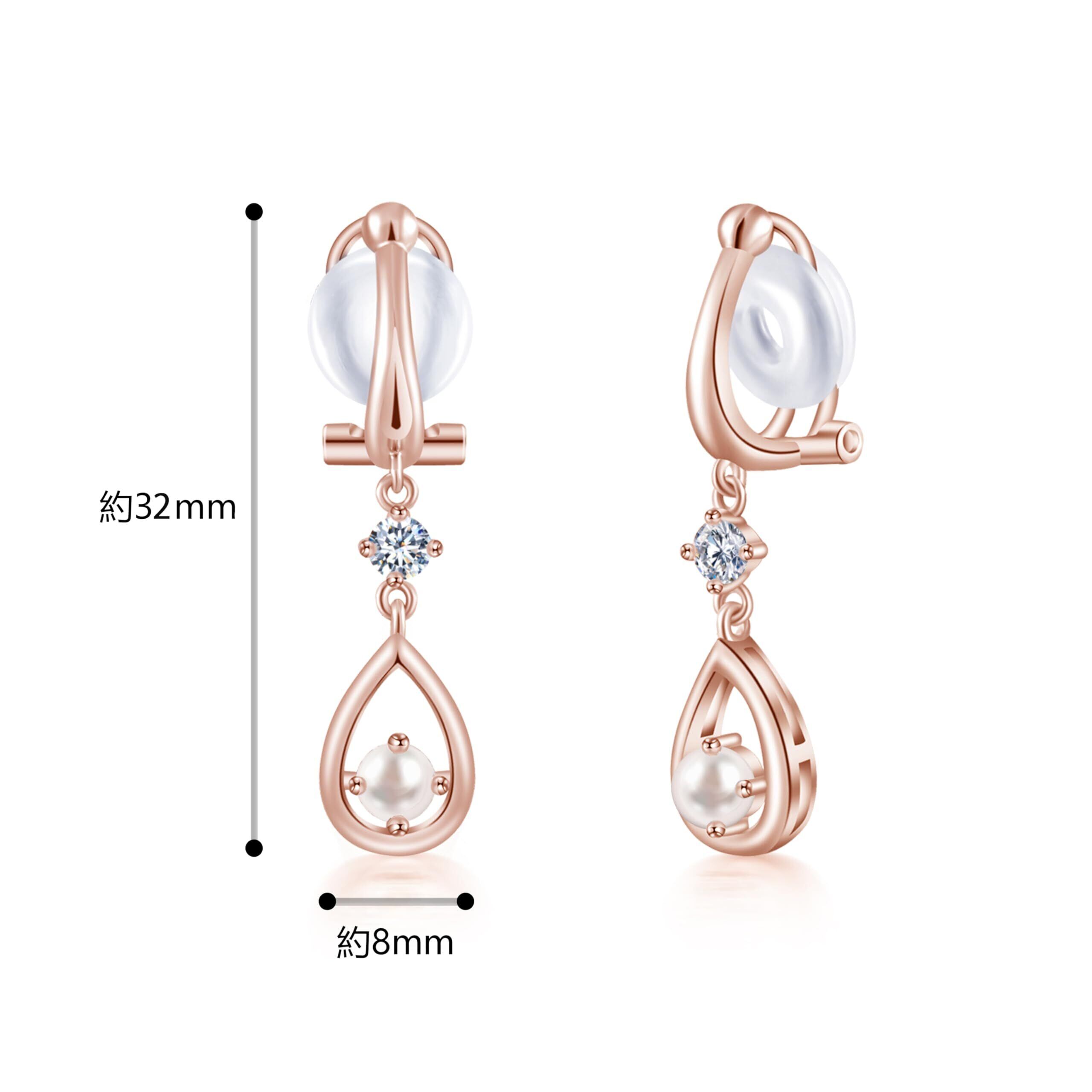 六月の誕生石:パールは女性のお守り石と呼ばれ、情緒や精神に働きかけ、柔軟でおおらかな人間性を引き出します。優しい貝パールとジルコニアの輝きがピンクゴールドと調和し、耳元で優雅な印象を醸し出します