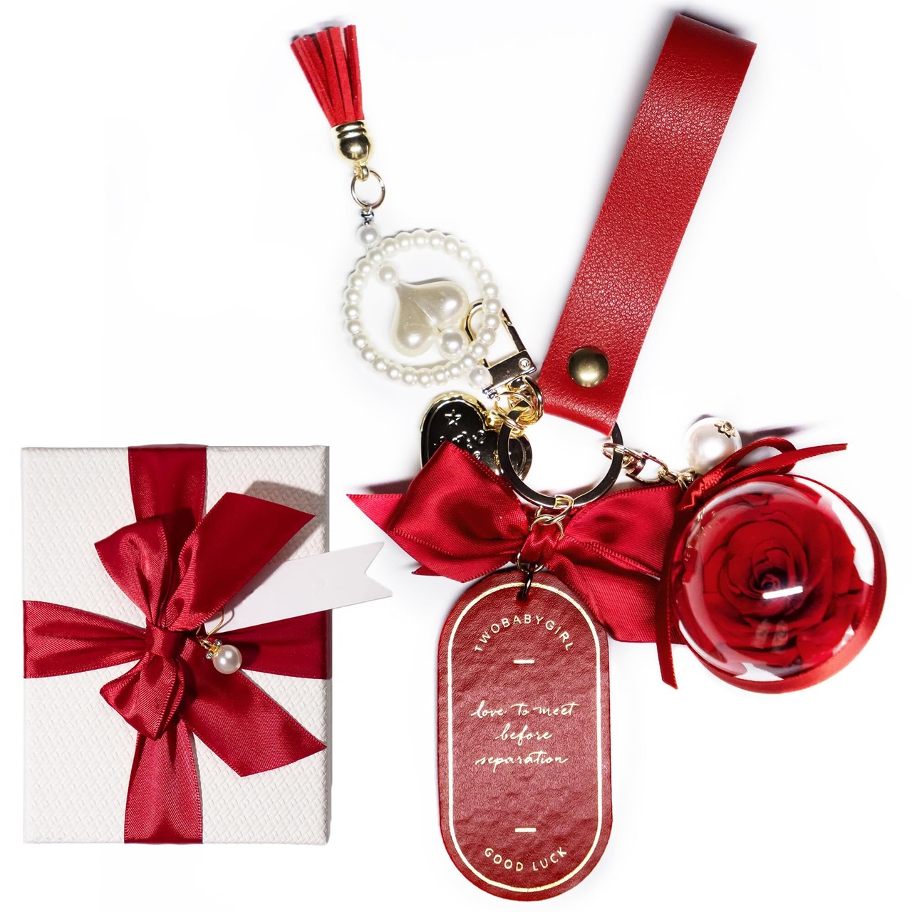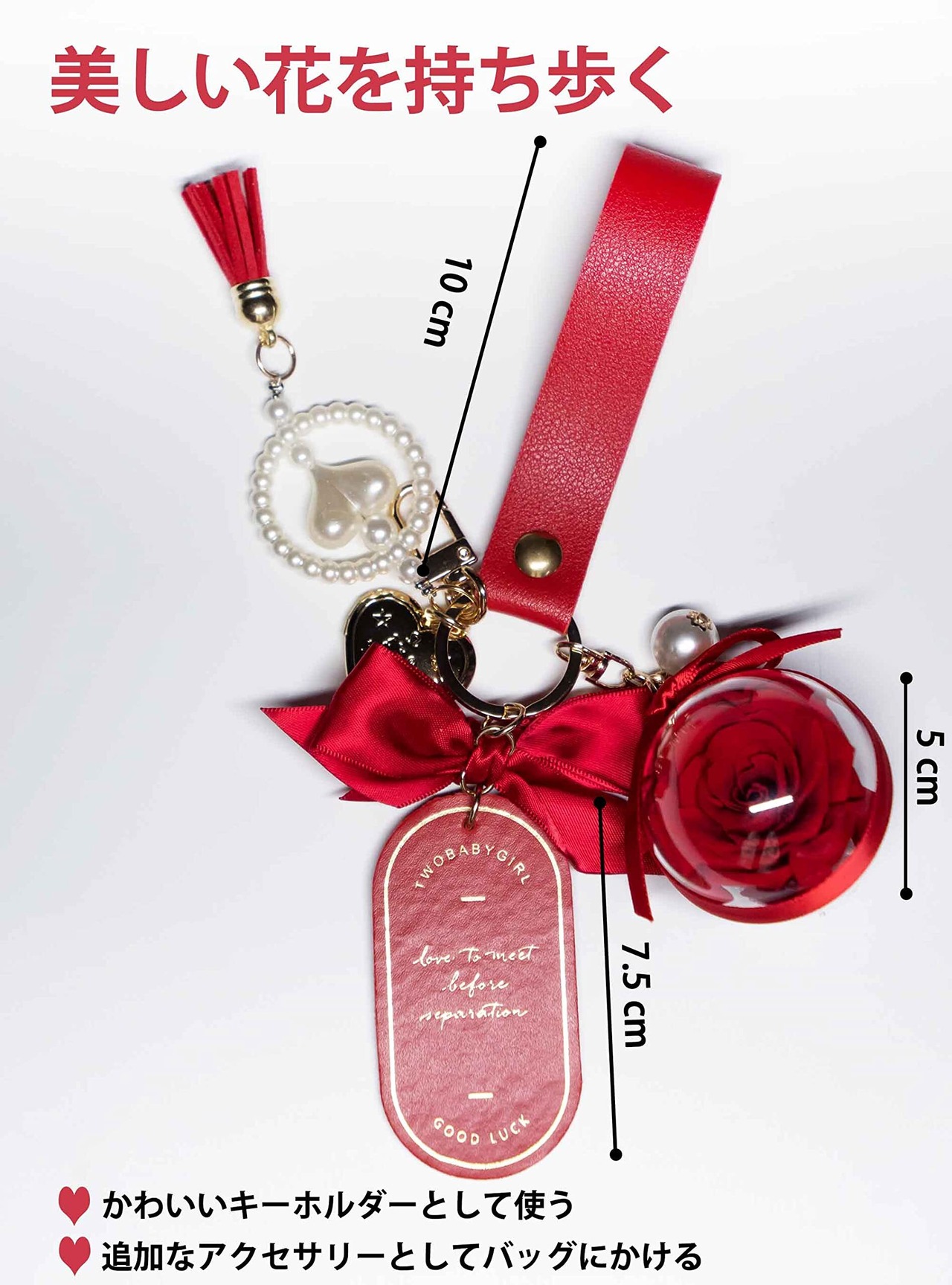 [ORANGESCE] プリザーブドフラワー キーホルダー 枯れない花 女性 女友達 彼女 母 かわいい 贈り物 バレンタイン 記念日 誕生日 人気 結婚祝い 引越し祝い 母の日 プレゼント クリスマス 入学 卒業 ギフト(レッド)